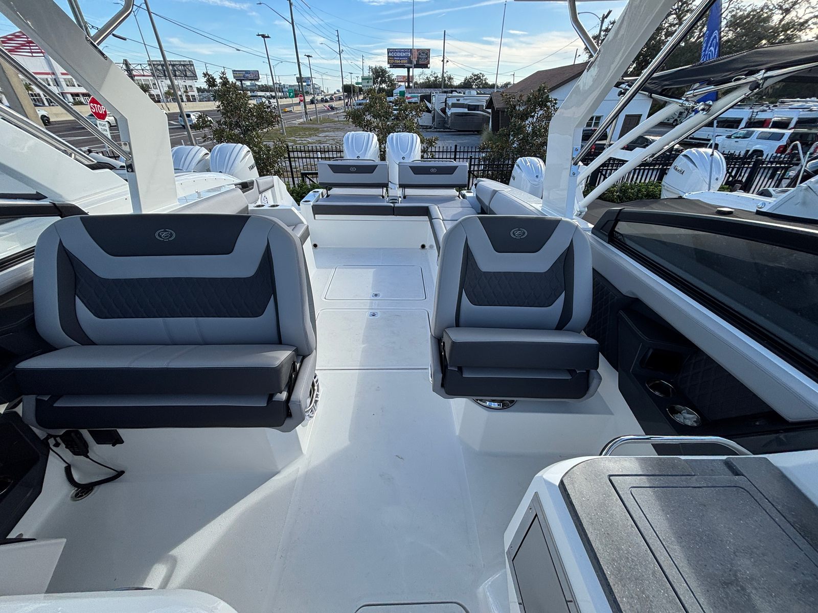 In summary, the 2026 Cobalt R31 OB is a standout cruiser boat for sale that combines powerful performance, luxurious features, and practical design in one stunning package. With twin Yamaha F350XSA2 engines, a navy accent stripe, air conditioning, a white arch with hardtop and electric awning, a battery maintainer/charger, bow center cushion insert, white dinette table with bow and cockpit reception, fender clips with storage tub, flagpole with flag, and a Frost/Slate interior, this new Cobalt boat for sale is ready to deliver unforgettable experiences on the water.If you are searching for a cruiser that offers the perfect blend of style, comfort, and performance, the Cobalt R31 OB is an exceptional choice. Don’t miss your opportunity to own this remarkable boat—contact your local dealer today to learn more and schedule a viewing. Your next adventure awaits aboard the Cobalt R31 OB!