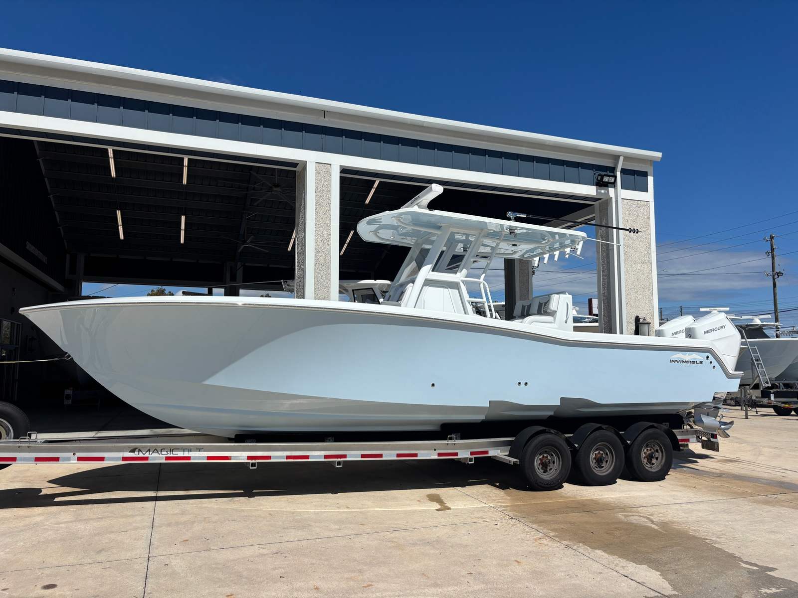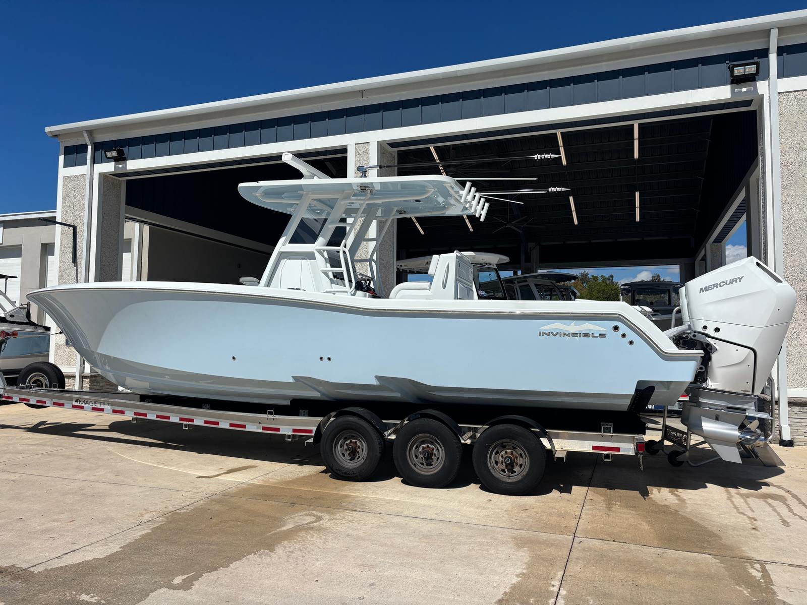 The 2026 Invincible 33 Open Fisherman is more than just a center console boat for sale—it is a gateway to unforgettable experiences on the water. With its twin Mercury 400 V10 Verado engines, advanced VesselView 502 Display, stylish white motor upgrade, electric steering, joystick control, hardtop, LED spreader lights, Gem Bluewater Outrigger Bases, Gem 18' external black poles, and five rod holders, this Invincible boat for sale is equipped to meet the needs of serious anglers and recreational boaters alike.If you are searching for a new center console boat that combines performance, innovation, and comfort, the Invincible 33 Open Fisherman is the ultimate choice. Don’t miss your chance to own a vessel that redefines what it means to enjoy life on the water. Contact your local dealer today to learn more about this exceptional boat and start planning your next adventure.