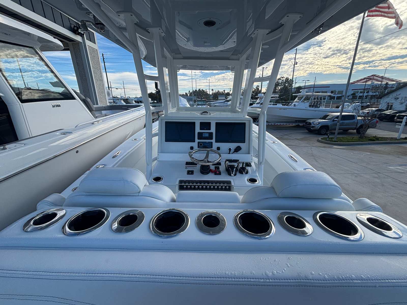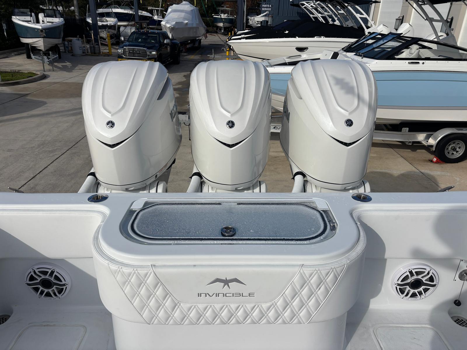The 2026 Invincible 36 Open Fisherman is loaded with premium features designed to enhance your time on the water. The White Motor Upgrade for all three engines adds a sleek, modern look to the transom, while the Gem Bluewater Outrigger Bases and Gem 18' External Black Poles provide the ultimate setup for offshore trolling and big-game fishing. The inclusion of Kingfish Rodholders (pair) and an additional 10 rod holders on the side of the gunwale ensures that every angler on board has ample space for their gear.For added comfort and protection from the elements, the windshield enclosure and two-panel wings create a sheltered helm area, allowing you to stay dry and comfortable during rough weather or long runs offshore. Every detail of this center console boat for sale is designed with the serious angler and boating enthusiast in mind, making it a top contender in its class.