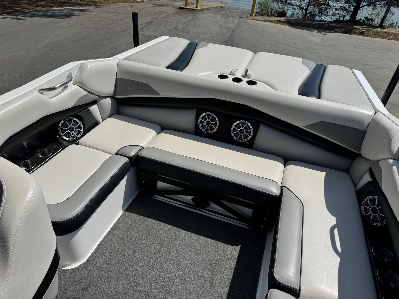 The Axis A22 is packed with features designed to enhance your time on the water. Its spacious 22-foot layout provides plenty of room for passengers, gear, and all the essentials for a day of fun. The boat’s design focuses on maximizing comfort and usability, with ergonomic seating and a well-thought-out interior that keeps everyone engaged and comfortable. The 2015 Axis A22 is built for performance, with a hull shape optimized for creating the perfect wake, making it a favorite among wakeboarders and skiers alike.