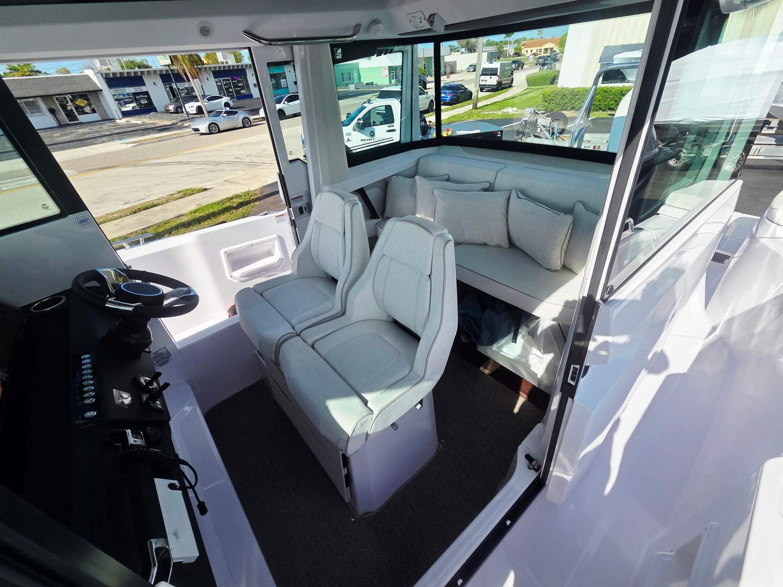 Practicality is at the heart of the Axopar 29 XC Cross Cabin’s design. The generous storage options allow you to bring along all your gear, from fishing equipment to water toys, without sacrificing space or comfort. The efficient hull design and advanced electrical system contribute to fuel efficiency and reduced maintenance, making ownership more enjoyable and cost-effective.Docking and maneuvering are made easier with the integrated navigation cameras, providing clear views of your surroundings and enhancing safety in tight spaces. The freshwater and raw water systems simplify cleaning and maintenance, while the fixed windlass in the bow streamlines the anchoring process. Every feature is thoughtfully integrated to make your time on the water as seamless and enjoyable as possible.