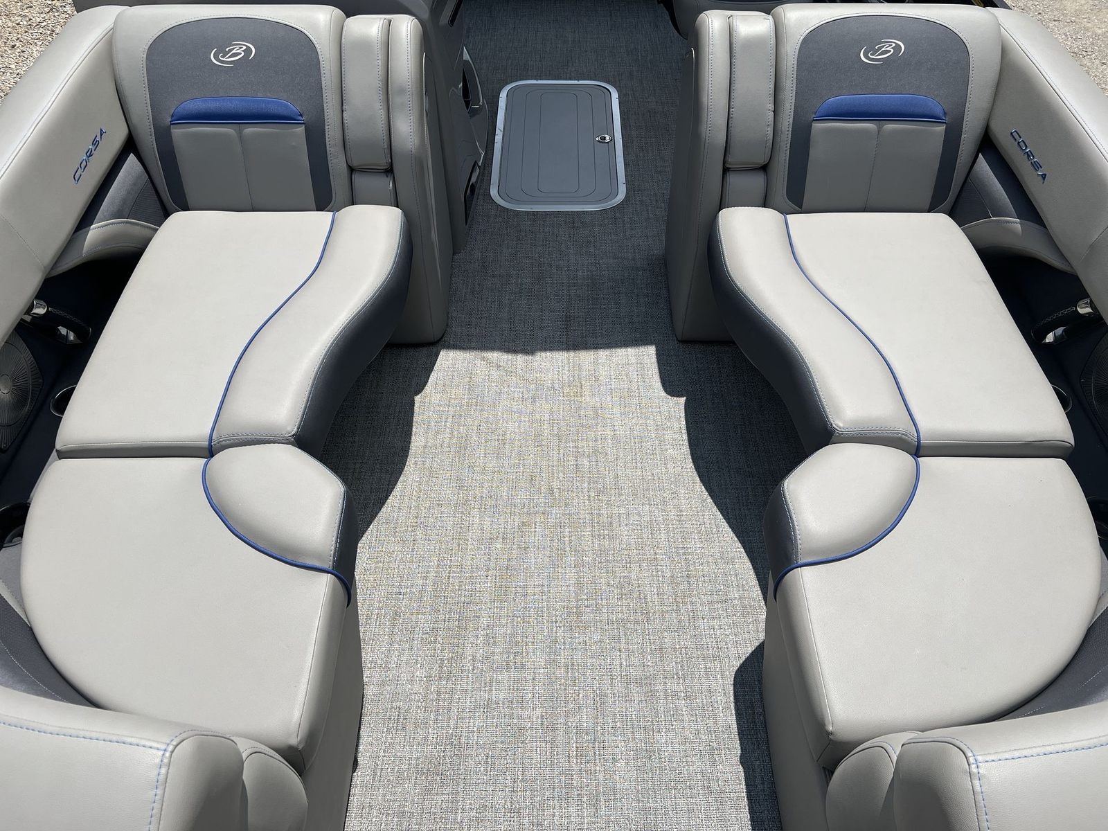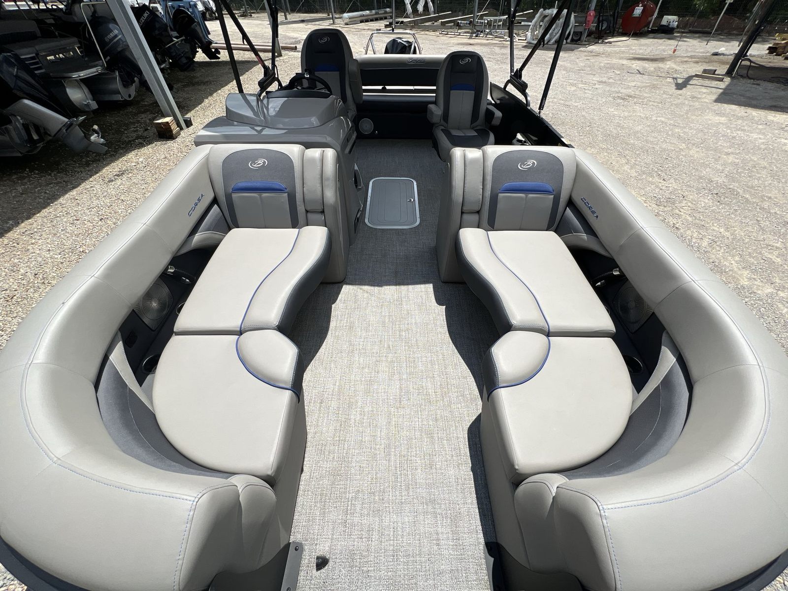 The Barletta Corsa 23UC is thoughtfully designed with features that enhance both comfort and functionality. Its spacious 23-foot deck provides plenty of room for guests to move around, lounge, and enjoy the scenery. The modern design elements and high-quality materials used throughout the boat create an inviting and stylish atmosphere. The seating is plush and ergonomically designed, ensuring that everyone on board can relax in comfort during long days on the water. The layout is optimized for socializing, with ample seating areas that encourage conversation and connection.This pontoon boat is also equipped with practical features that make every outing more enjoyable. The intuitive helm station puts you in complete control, with easy-to-read gauges and responsive controls that make navigation a breeze. The deck layout allows for easy movement and access to all areas of the boat, while the sturdy construction ensures safety and stability even in choppier conditions. The Barletta Corsa 23UC is built to last, with attention to detail evident in every aspect of its design.