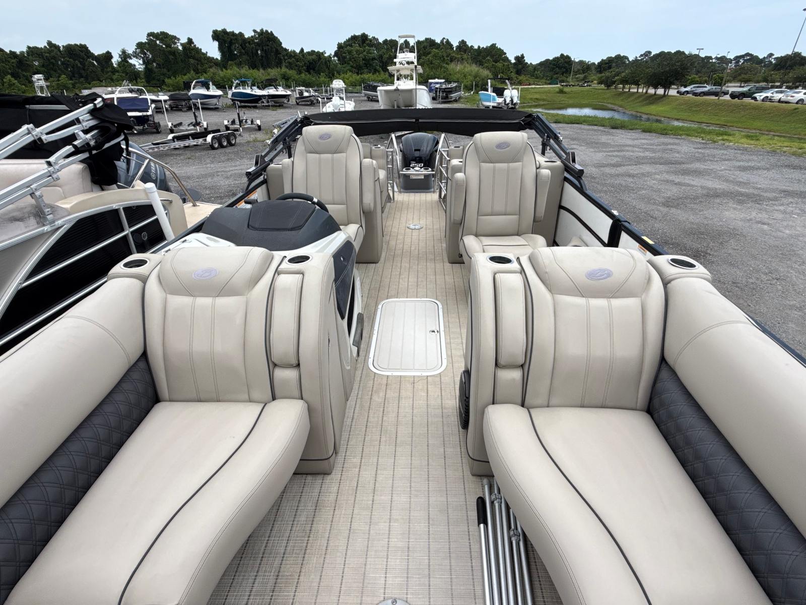Powering this impressive pontoon is a single engine with 250 horsepower, delivering a thrilling yet smooth ride every time you hit the water. With only 32 engine hours, this used pontoon boat for sale offers the reliability and longevity you would expect from a nearly new vessel. The Lusso L23QCSS is engineered for responsive handling and efficient cruising, ensuring you can explore your favorite waterways with confidence. Whether you are gliding across calm lakes or picking up speed for water sports, the performance of this Barletta boat is sure to impress.