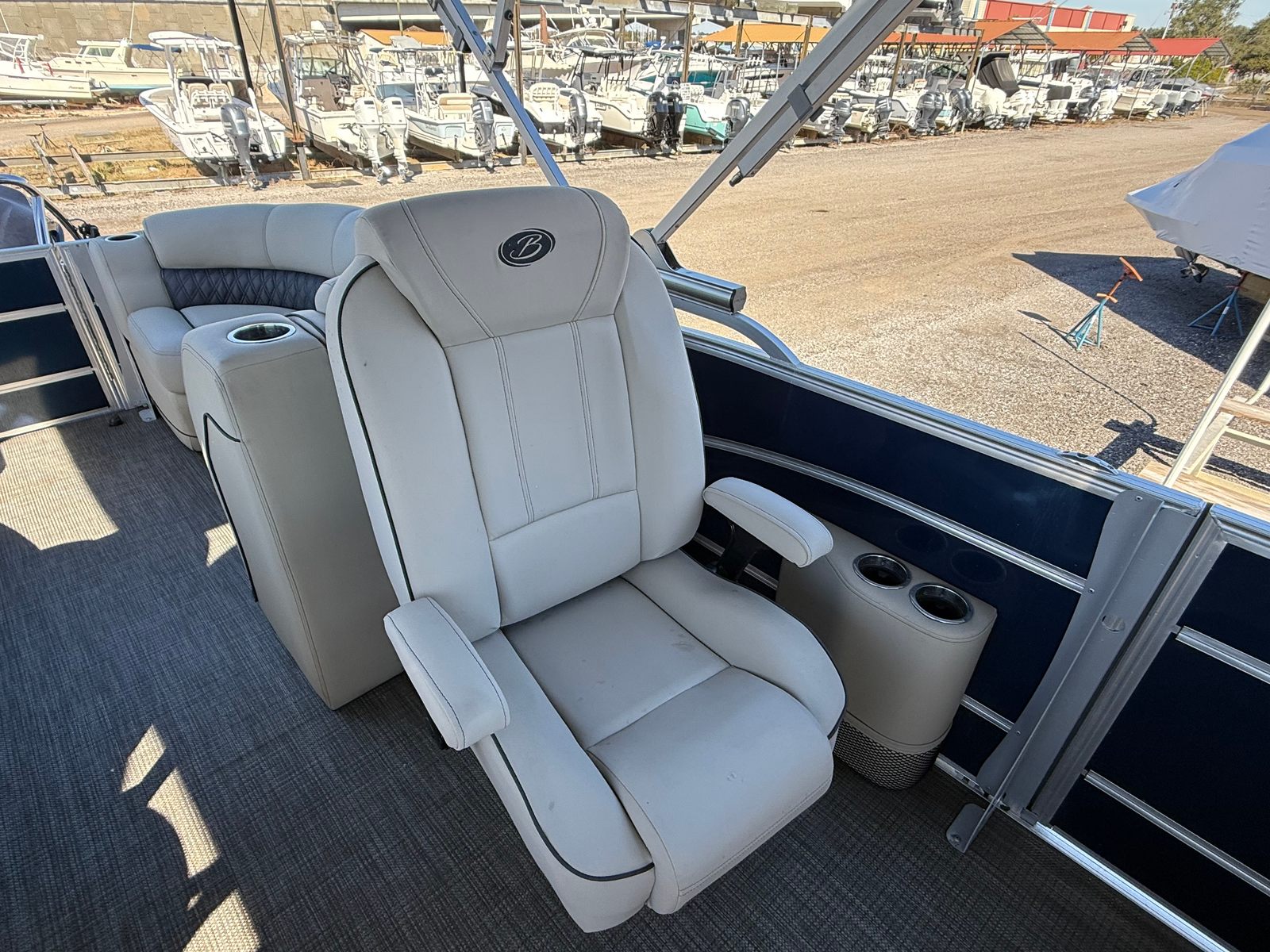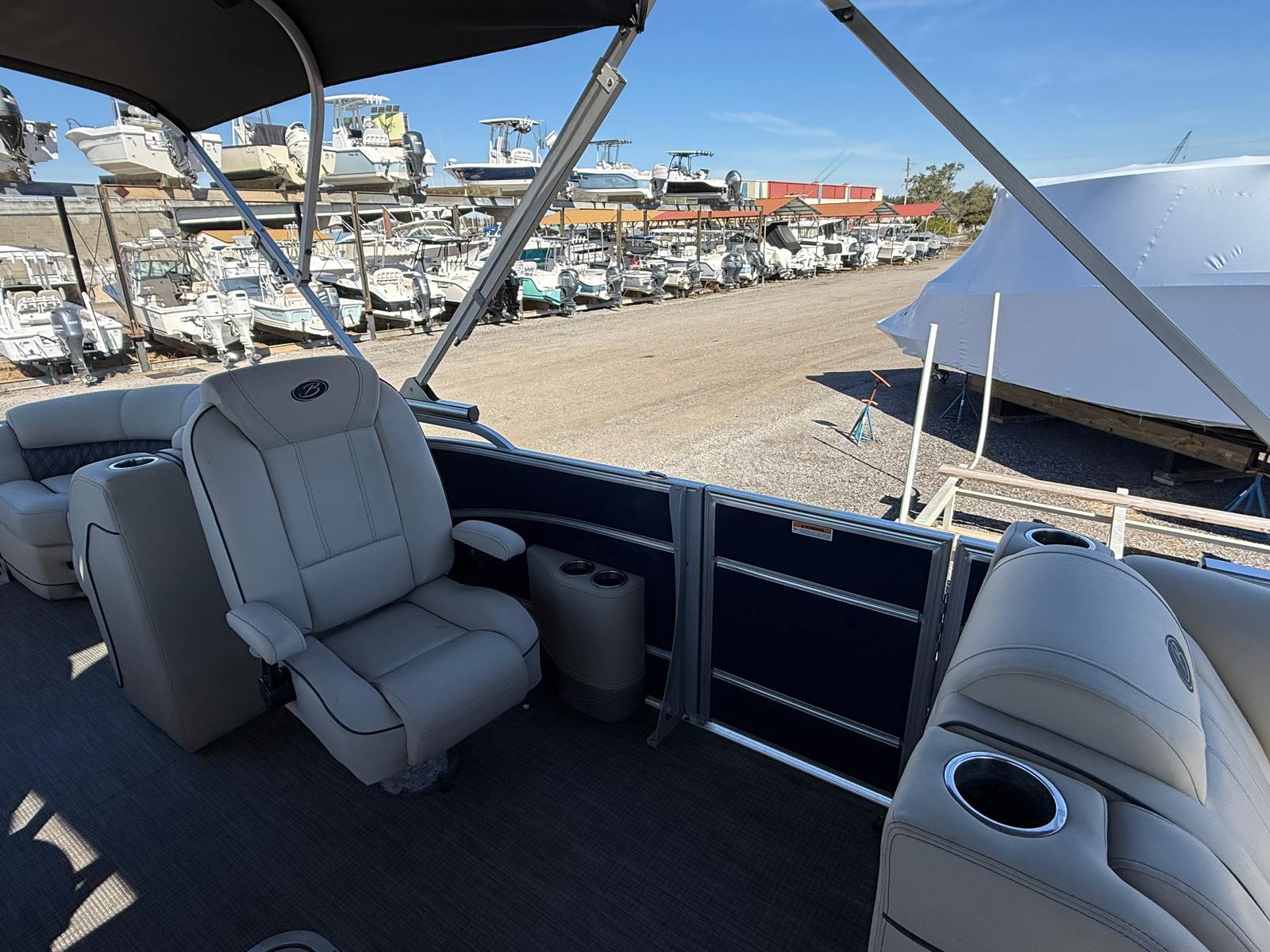 Powering the Barletta Lusso L25QC is a single engine with an impressive 250 horsepower and just 241 engine hours, delivering robust performance and reliable efficiency. This powerful setup ensures smooth acceleration, responsive handling, and the ability to cruise effortlessly across lakes, rivers, and coastal waters. Whether you’re towing water toys, heading out for a sunset cruise, or simply enjoying a leisurely ride, the Lusso L25QC’s engine provides the perfect balance of strength and fuel economy. With this pontoon boat for sale, you can expect a thrilling yet comfortable ride every time you hit the water.
