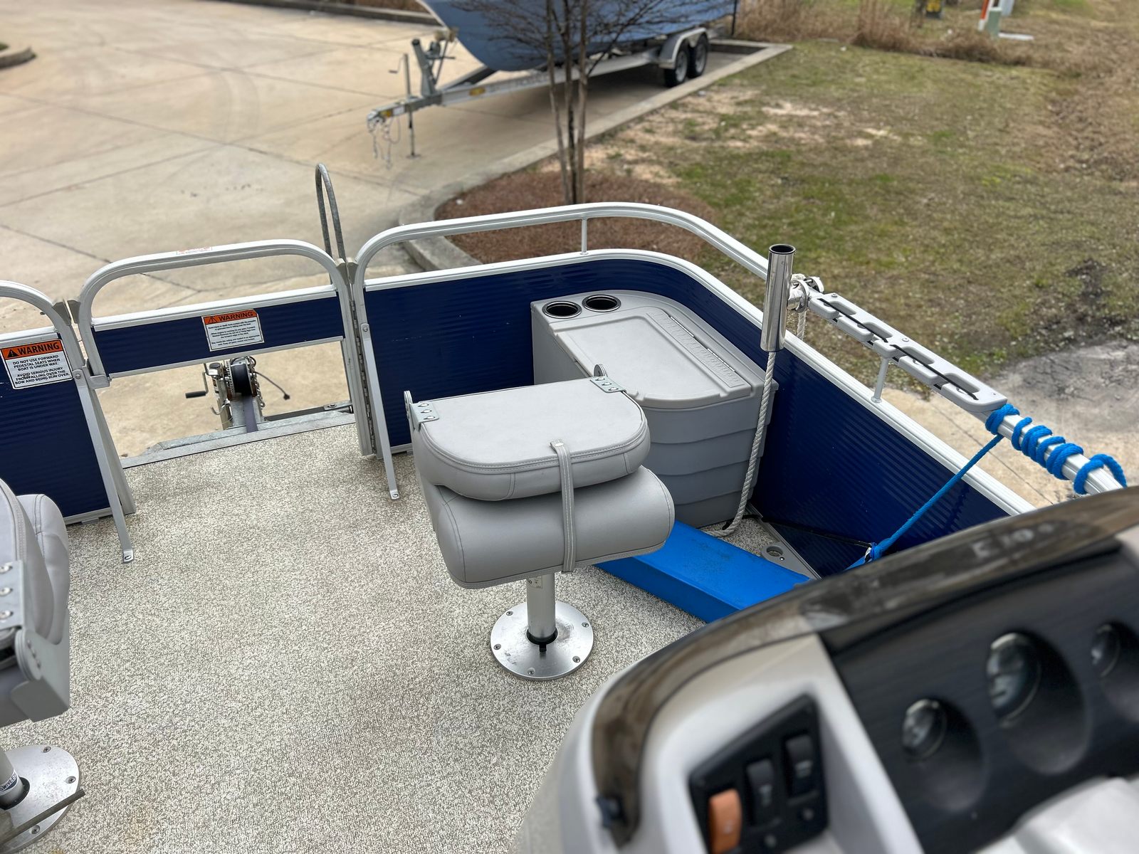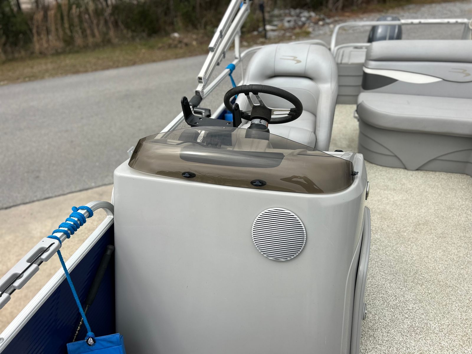 The Bennington 188 SLV is thoughtfully designed with features that enhance both comfort and convenience. The spacious deck layout allows for easy movement and plenty of seating, making it perfect for socializing, sunbathing, or simply relaxing with loved ones. The pontoon’s sturdy construction ensures a stable and secure ride, even when the water gets a little choppy. The 18-foot length strikes a great balance between portability and passenger capacity, giving you the flexibility to host small gatherings or enjoy peaceful solo excursions.This used pontoon boat also benefits from Bennington’s reputation for quality craftsmanship and attention to detail. Every aspect of the 188 SLV is designed to maximize your enjoyment on the water, from the comfortable seating arrangements to the intuitive controls at the helm. The durable materials and stylish finishes ensure that your boat will look great and perform well for years to come.