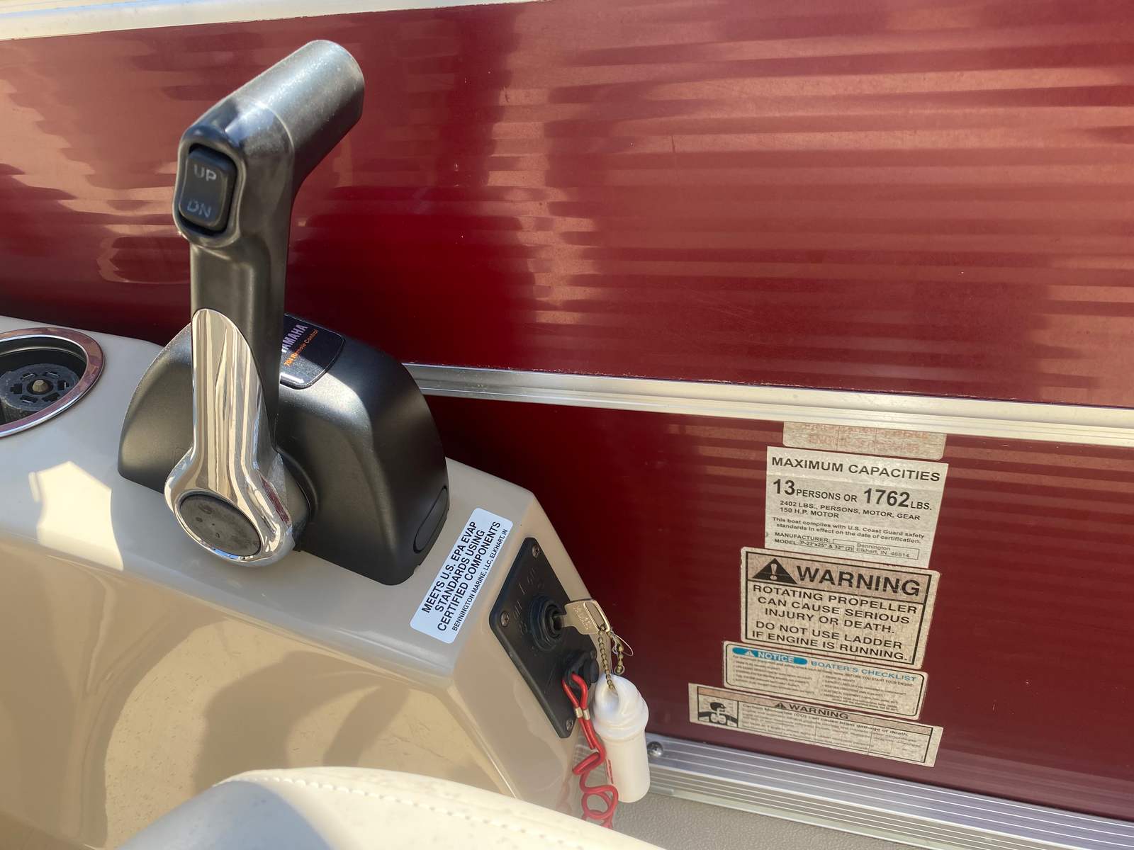 Powering this Bennington 2275GS is a single engine with an impressive 150 horsepower. This configuration delivers a perfect blend of power and efficiency, allowing you to glide effortlessly across lakes, rivers, or coastal waters. The 150 HP engine provides plenty of thrust for towing water toys, cruising at higher speeds, or simply enjoying a leisurely ride. Whether you’re an experienced boater or new to the world of pontoons, the responsive handling and reliable performance of this model make every outing enjoyable and stress-free.