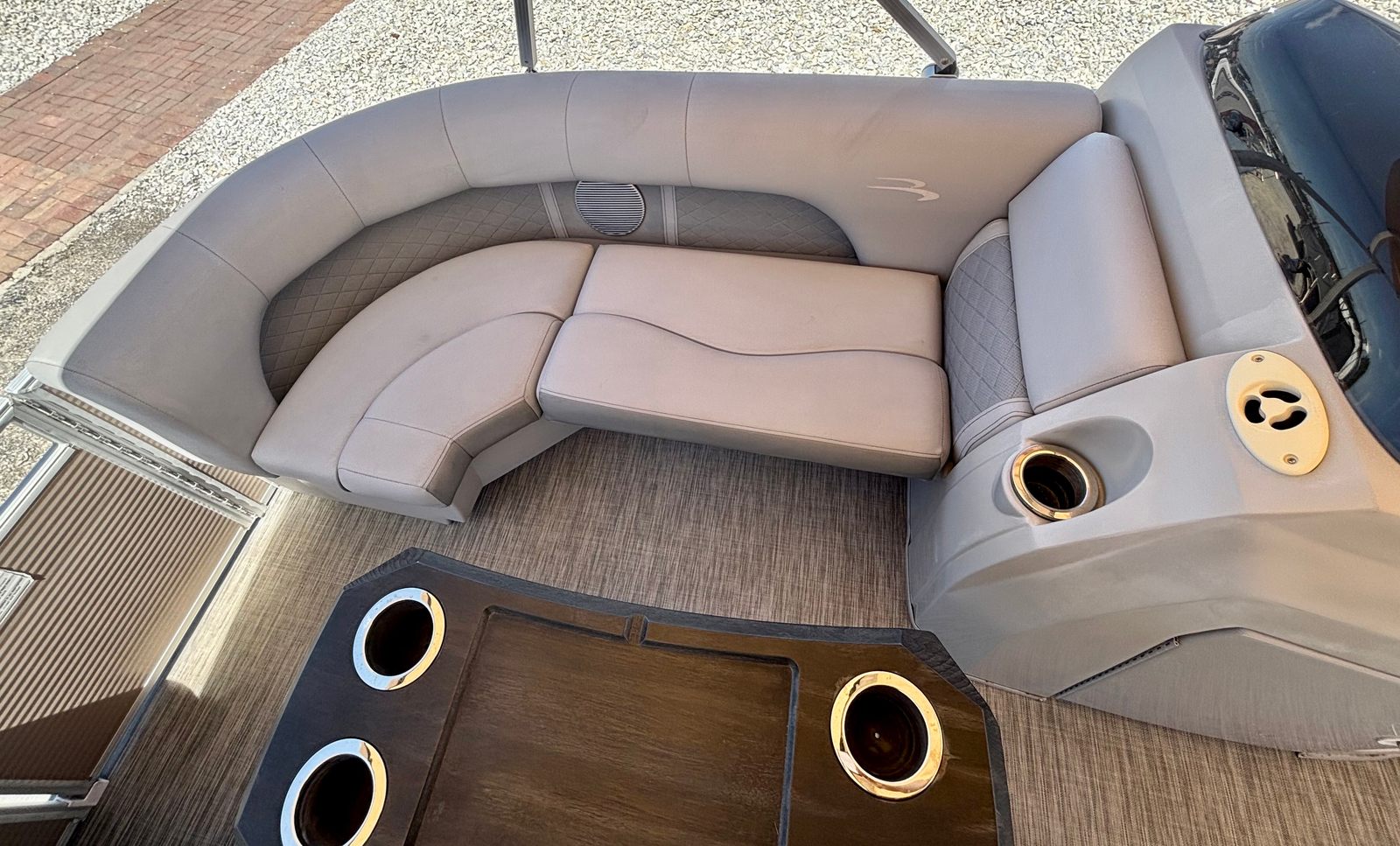 Powered by a single engine with an impressive 150 horsepower, the Bennington 22SSRXP delivers a smooth and responsive ride. This pontoon boat is engineered for both leisurely cruising and spirited adventures, allowing you to glide effortlessly across lakes, rivers, and calm coastal waters. The 150-horsepower engine offers the perfect balance of power and efficiency, ensuring you can enjoy extended outings without worrying about fuel consumption. Whether you’re towing water toys, heading to your favorite fishing spot, or simply enjoying a sunset cruise, the performance of this Bennington boat for sale will exceed your expectations.