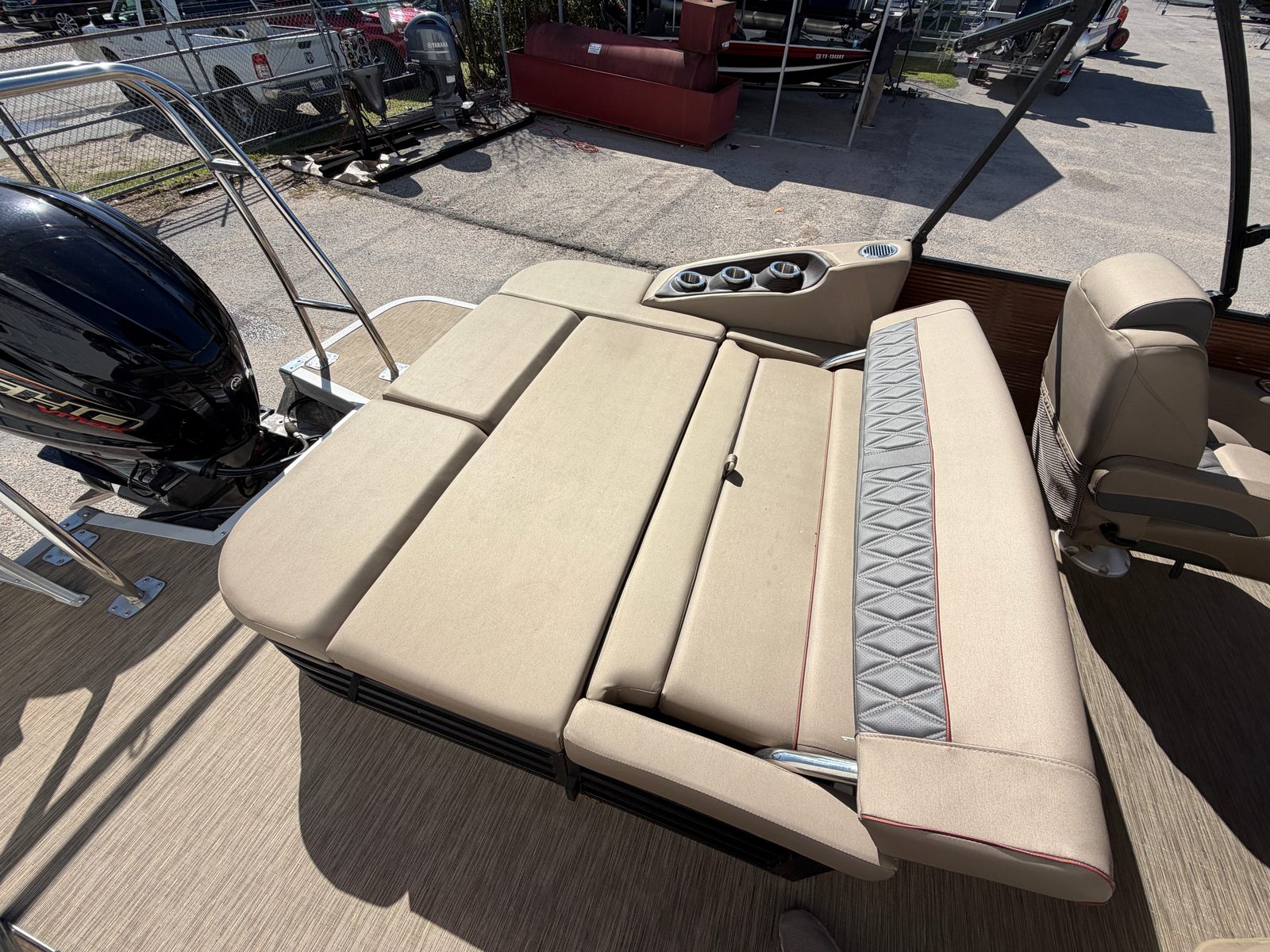 The 2023 Bennington 24 Lxsb pontoon boat is designed with both comfort and convenience in mind. Its spacious 24-foot deck offers plenty of room for entertaining, lounging, and making memories with loved ones. The open layout allows for easy movement throughout the boat, while plush seating ensures everyone can relax in style. The pontoon’s sturdy construction and high-quality materials reflect Bennington’s dedication to excellence, providing peace of mind and lasting value.This used pontoon boat for sale also features a modern helm with intuitive controls, making navigation a breeze for both seasoned boaters and newcomers alike. The thoughtful design extends to every detail, from the ample storage compartments for your gear and supplies to the stylish accents that set this Bennington boat apart from the competition.