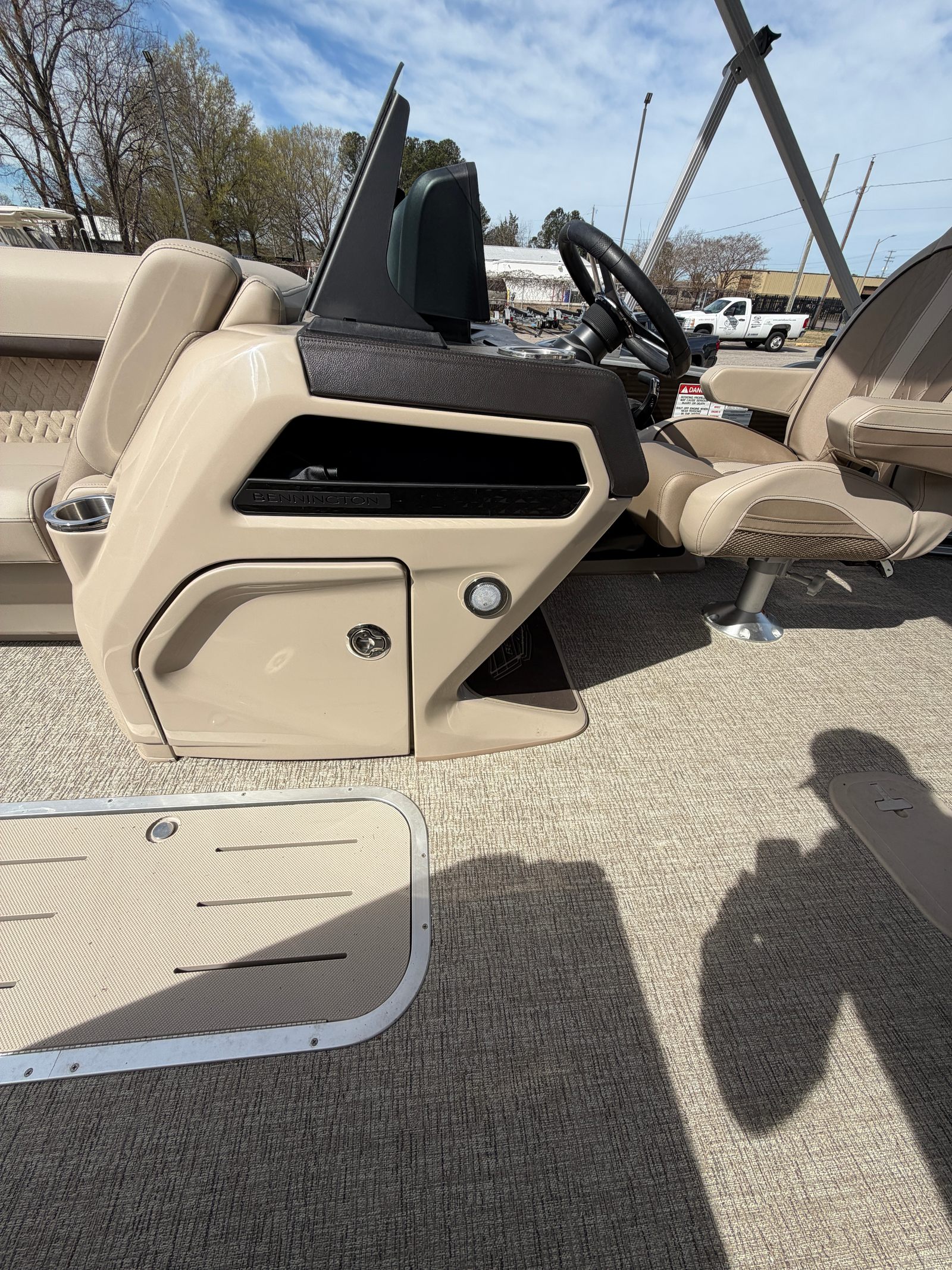 This Bennington pontoon boat for sale is as practical as it is fun. The spacious layout provides plenty of storage for all your gear, from coolers and water toys to fishing equipment and picnic supplies. Docking is a breeze thanks to the boat’s responsive handling and manageable size, making it easy to visit your favorite waterfront destinations or explore new ones. The efficient engine helps you make the most of your time on the water, offering a great balance of power and fuel economy. Whether you’re planning a day trip or a weekend getaway, the Bennington 24 MSB SPS is equipped to handle all your boating adventures with ease.