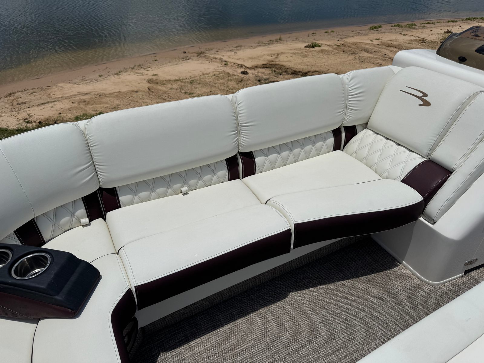 The Bennington 25 QXSBX1IO ESP is packed with features designed to elevate your time on the water. Its spacious 27-foot deck offers plenty of room for guests, making it perfect for social gatherings and family outings. The layout is thoughtfully designed to maximize comfort and convenience, with plush seating and ample space for movement. The pontoon’s construction reflects Bennington’s commitment to durability and quality, ensuring a vessel that’s built to last.Special features of this model include the ESP (Elliptical Sport Package), which enhances stability and handling, making it easier to navigate various water conditions. The boat’s design also prioritizes safety, with sturdy railings and secure entry points. Whether you’re anchoring for a swim or docking at your favorite lakeside spot, the Bennington 25 QXSBX1IO ESP offers peace of mind and ease of use.