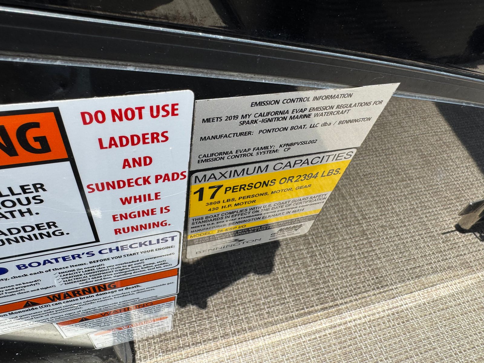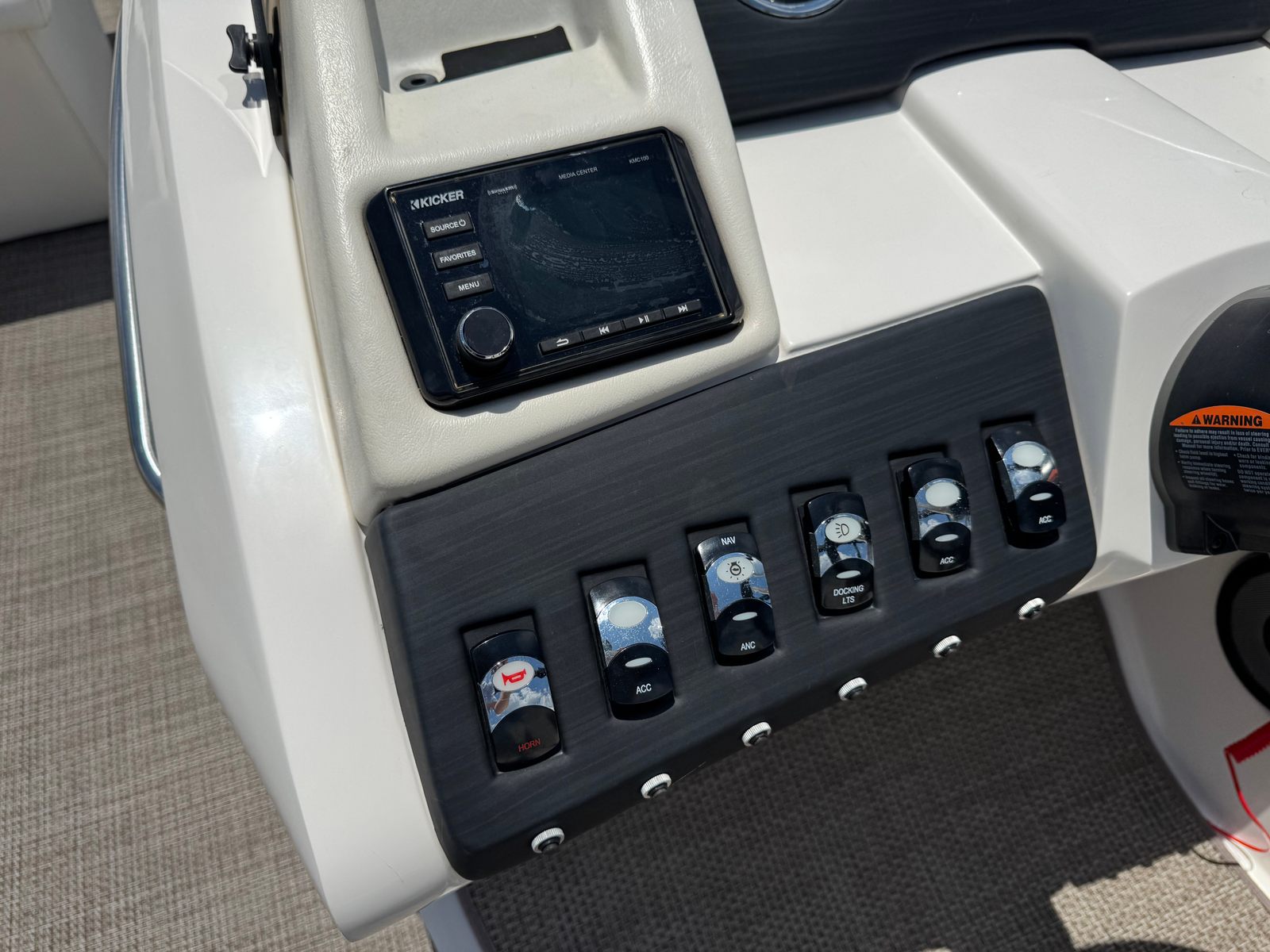 Under the hood, the Bennington 25 QXSBX1IO ESP is powered by a single engine boasting a robust 430 horsepower. This impressive engine ensures smooth acceleration, reliable handling, and plenty of power for a variety of activities, from leisurely cruising to thrilling water sports. The pontoon’s performance is further enhanced by Bennington’s innovative engineering, delivering a ride that’s both stable and exhilarating. With 138 engine hours, this boat has plenty of life left for new adventures, making it a smart investment for those who value both performance and longevity.