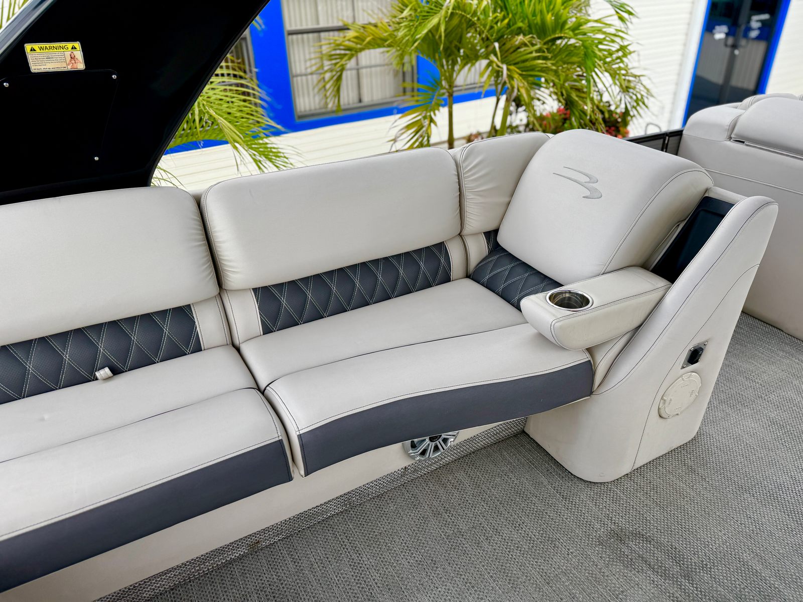 Powering this Bennington pontoon is a robust single engine with an impressive 425 horsepower, delivering smooth and reliable performance on the water. With only 298 engine hours, this boat has plenty of life left for countless adventures. The powerful engine ensures quick acceleration, effortless cruising, and the ability to handle a variety of water conditions with confidence. Whether you are towing water toys, exploring new coves, or simply enjoying a leisurely cruise, the performance of this Bennington boat for sale will exceed your expectations.