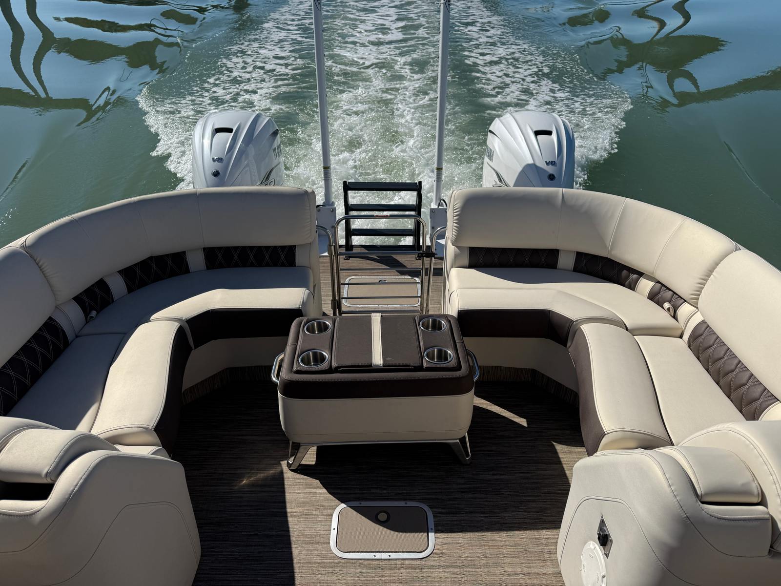 This Bennington boat for sale is as practical as it is enjoyable. The spacious deck provides plenty of room for coolers, water toys, and other essentials, making it easy to prepare for a day of fun. The dual engines not only enhance performance but also simplify docking and maneuvering, so you can spend less time worrying and more time enjoying your surroundings. The efficient design helps maximize fuel economy, allowing you to explore further without frequent stops. Whether you’re heading out for a quick afternoon cruise or planning an all-day adventure, the Bennington 30 Qxfbwa X2 adapts to your needs with ease.