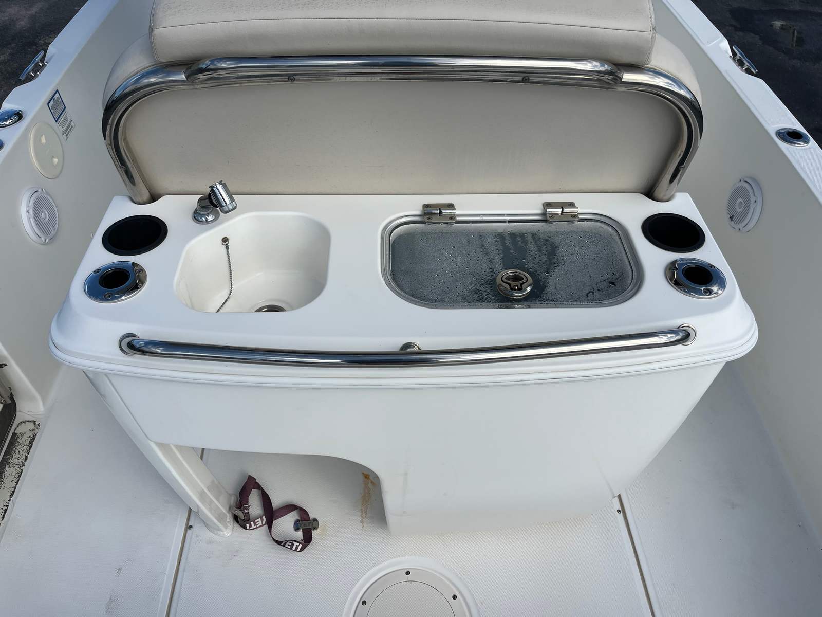 Step aboard and you’ll immediately notice the thoughtful layout and spacious seating throughout. The bow features comfortable lounge seating perfect for relaxing or entertaining, while the aft cockpit provides plenty of room for fishing or socializing. A large center console with head compartment adds convenience for full days on the water. In Add in the already installed, much desired, powerpole SHALLOW WATER ANCHOR and you have the complete package.