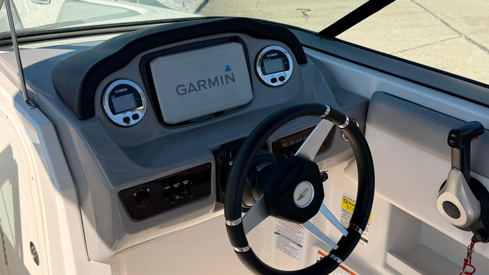 The Chaparral 23 SSI OB is packed with features that enhance both functionality and enjoyment. Its spacious bowrider layout offers generous seating arrangements, allowing guests to relax and socialize in comfort. The open design maximizes usable space, making it easy to move around the boat and enjoy every moment on the water. The high-quality construction and attention to detail are evident throughout, from the durable hull to the stylish upholstery.With a length of 23 feet, this bowrider boat for sale provides ample room for entertaining, sunbathing, or enjoying a picnic on the water. The ergonomic helm station is designed for intuitive control, ensuring that the captain can navigate with ease and confidence. Storage compartments are thoughtfully integrated throughout the boat, providing plenty of space for gear, water toys, and personal belongings, so you can keep the deck clutter-free and organized.