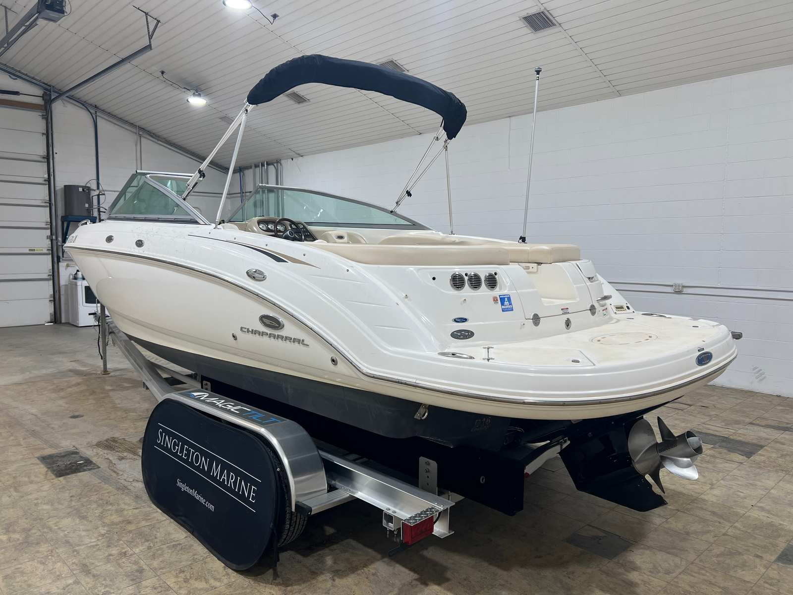 The Chaparral 236 SSI is packed with features that enhance both its functionality and enjoyment. As a 23-foot bowrider, it offers generous seating in both the bow and cockpit areas, allowing guests to spread out and enjoy the ride. The open bow design is perfect for sunbathing or taking in the views, while the wraparound seating in the cockpit provides a comfortable space for conversation and relaxation. The helm is thoughtfully laid out, with intuitive controls and clear instrumentation that make navigation a breeze.This used Chaparral boat for sale is built with quality materials and attention to detail, ensuring durability and a premium feel throughout. The hull design is optimized for stability and efficiency, delivering a smooth ride even in choppier waters. Storage compartments are strategically placed to keep your gear organized and out of the way, so you can make the most of your time on the water.