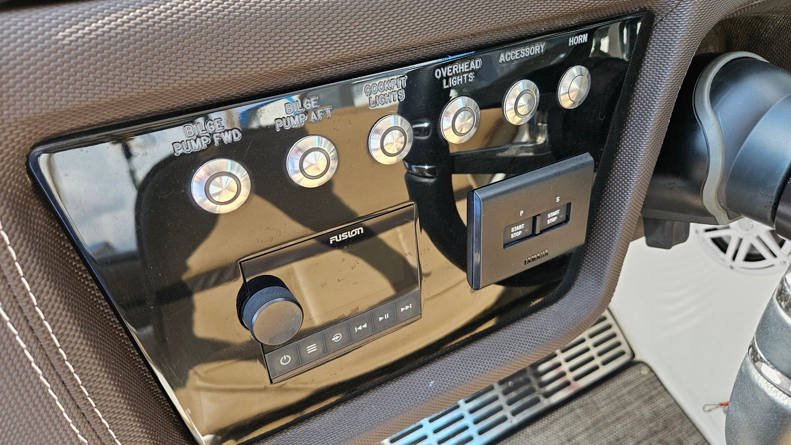 This Bowrider boat for sale is packed with premium features designed to enhance your boating experience. The hard top offers protection from the sun and elements, allowing you to enjoy your time on the water in comfort regardless of the weather. The windlass anchor system makes anchoring effortless, so you can quickly secure your boat and start enjoying your favorite spot. The aluminum triple axle trailer ensures easy transport and storage, giving you the flexibility to explore new waterways or conveniently store your boat when not in use. Snap-in carpet adds a touch of luxury and comfort underfoot, while JL Audio provides high-quality sound for your favorite tunes, creating the perfect atmosphere for any outing.