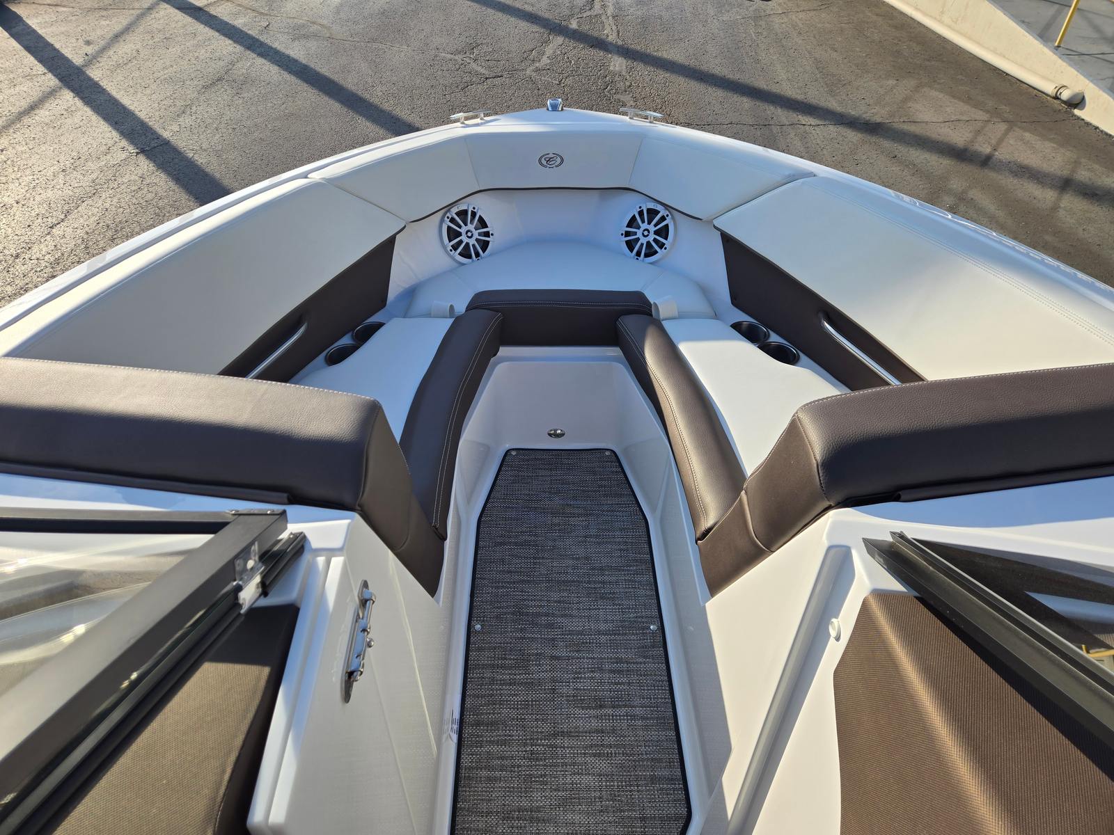The Cobalt CS22 Bowrider is packed with premium features that elevate your boating experience. The AFT Facing Rumble Seat offers a comfortable spot to relax and soak up the sun, while the Cobalt Letters in Black Satin add a touch of elegance to the boat’s exterior. Fender Clips with Line make securing your boat at the dock quick and easy, and the Floor Covering in Seagrass Raw Umber provides a plush, stylish surface underfoot. The Mooring Cover with Arch protects your investment from the elements, and the Swim Platform with Flip-Down Step makes it simple to access the water for swimming or boarding. The Tower—Zenith Black with Bimini in Ebony—adds both functionality and flair, providing shade and a sleek silhouette that complements the boat’s modern design.