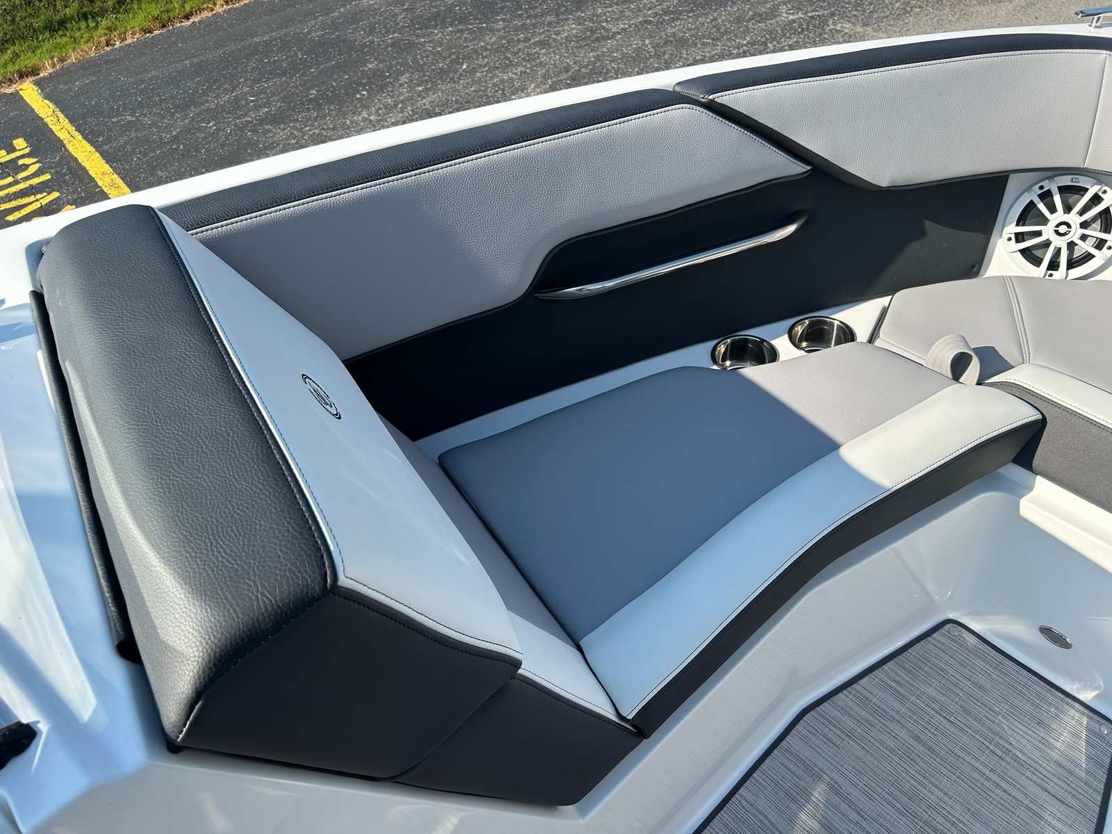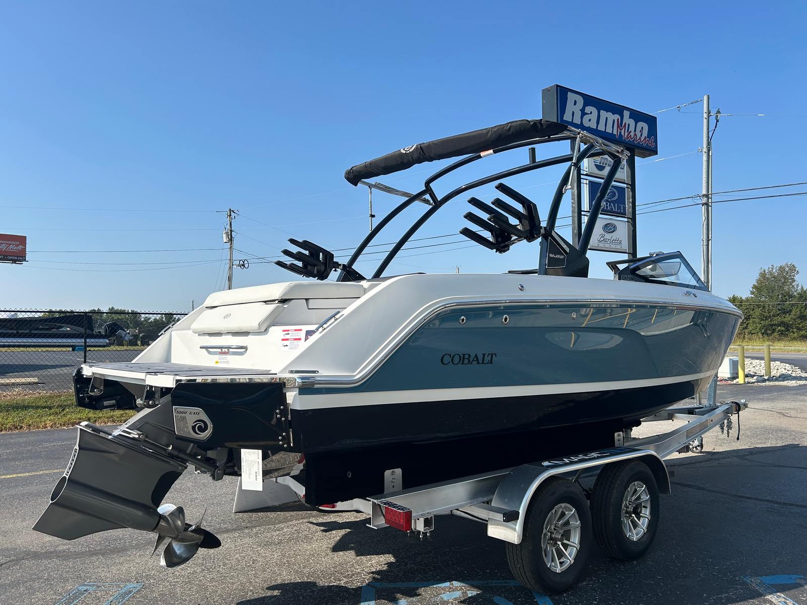 The Cobalt CS23 Surf is packed with special features that enhance comfort, convenience, and style. The aft-facing rumble seat offers a unique vantage point for relaxing or watching the action behind the boat, while the Cobalt letters in black satin add a touch of sophistication to the exterior. Fender clips with line (4) make docking and securing the boat a breeze, ensuring you can focus on enjoying your time on the water.Step aboard and you’ll notice the floor covering in Sea Grass, Silver Ash, which provides a soft, stylish surface underfoot. The hull bottom in rich ebony not only looks stunning but also contributes to the boat’s sleek aesthetic. LED interior accent lighting with R/G/B options creates a vibrant atmosphere for evening cruises or social gatherings, allowing you to set the mood to match any occasion.A mooring cover with arch protects your investment when the boat is not in use, while the rearview mirror, PTM with custom cover, ensures safety and visibility during watersports or busy boating days. The Sof-Trac mat on the swim platform with step, finished in gray/ebony, offers comfort and traction for swimmers and sunbathers alike.