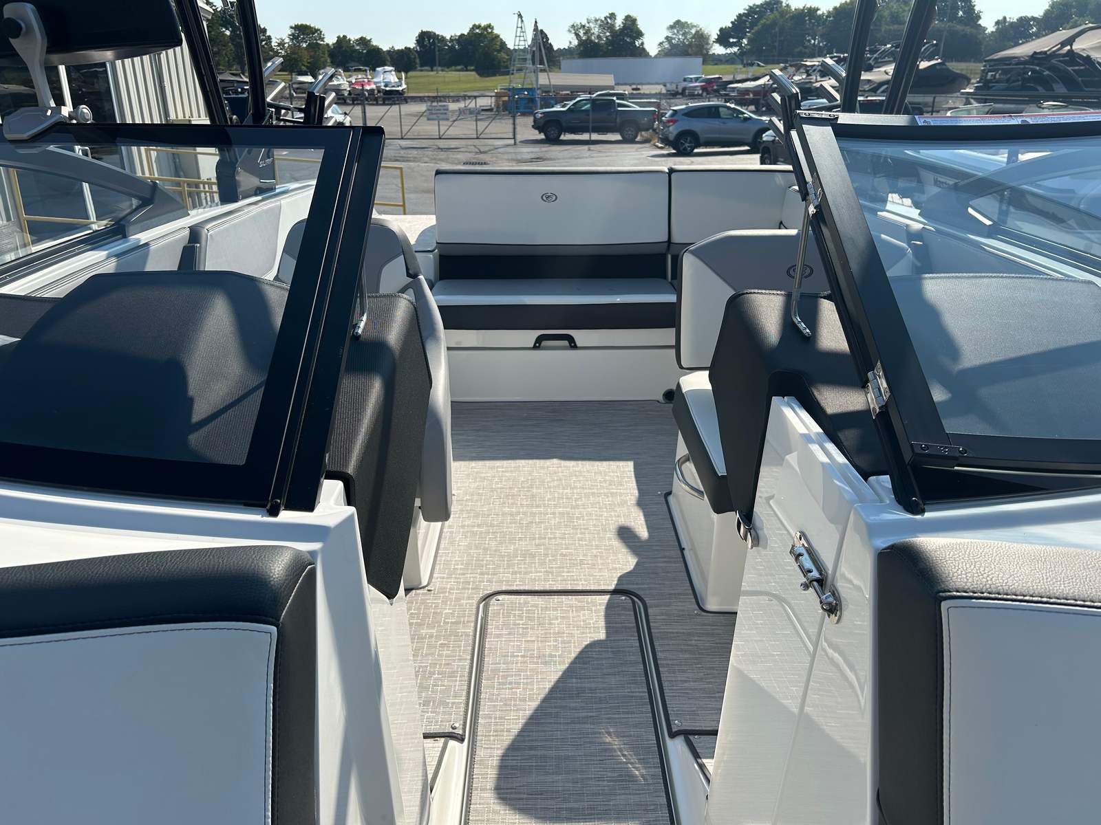 Practicality is at the heart of the Cobalt CS23 Surf’s design. The fender clips with line make docking and securing the boat simple and efficient, reducing stress and saving time. The mooring cover with arch helps protect your investment from the elements, while the rearview mirror enhances safety during busy days on the water. The Sof-Trac mat on the swim platform provides a safe, comfortable surface for swimmers and those boarding the boat, making transitions smooth and enjoyable.The spacious interior and smart storage solutions ensure you have plenty of room for gear, snacks, and personal items, so you’re always prepared for a day of fun. The efficient Volvo V8 engine offers reliable performance and fuel economy, allowing you to spend more time enjoying the water and less time refueling. Every detail of the CS23 Surf is designed to make ownership easy, enjoyable, and hassle-free.