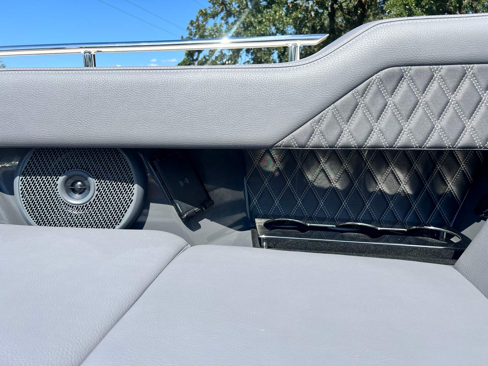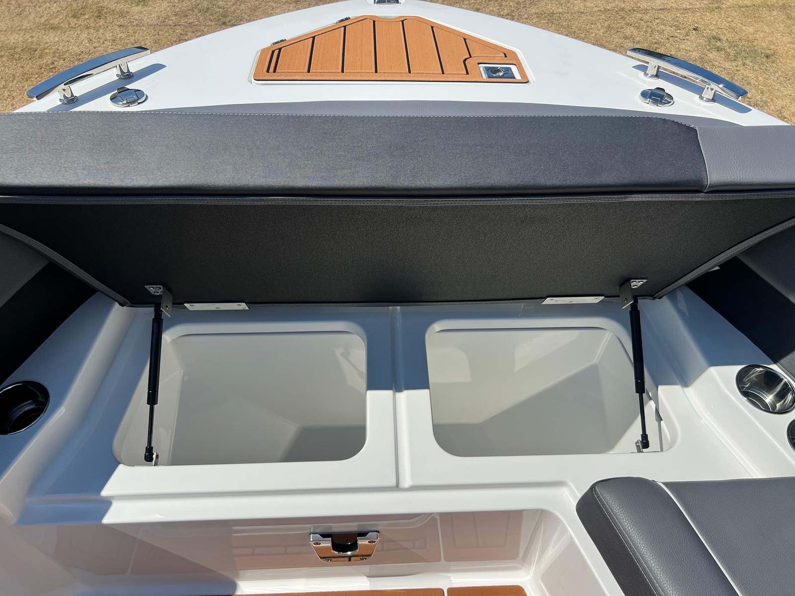 The Cobalt R31 Surf is as practical as it is beautiful. Its generous storage options, including the closet-watersports compartment and storage tub for fender lines, make it easy to keep your boat organized and clutter-free. The battery maintainer/charger ensures your boat is always ready to go, minimizing downtime and maximizing your time on the water.Docking and maneuvering are simplified thanks to the twin engines and joystick control, giving you confidence in tight spaces and busy marinas. The rear-facing camera adds an extra layer of safety, making it easier to keep an eye on swimmers, wakeboarders, or obstacles behind the boat. The electric adjustable seat and spacious cockpit allow for effortless transitions between activities, whether you’re cruising, dining, or gearing up for watersports.