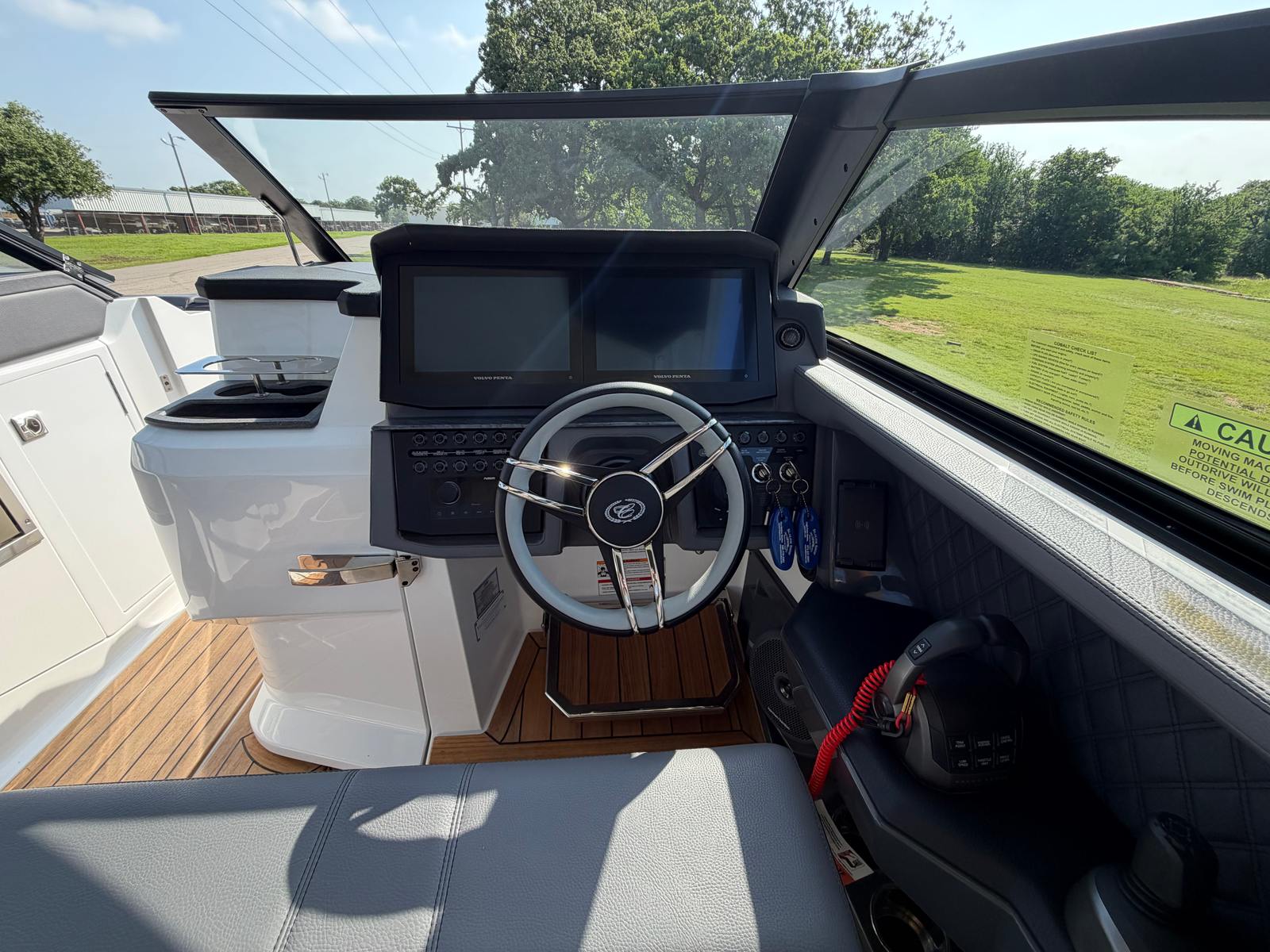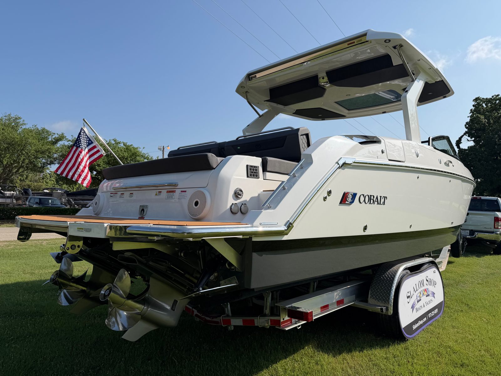 Owning the Cobalt R31 means embracing a lifestyle of fun, relaxation, and adventure. The spacious layout and premium amenities make every outing enjoyable, whether you’re hosting a lively gathering or seeking a peaceful escape. The climate-controlled helm and head ensure comfort in any season, while the electric awning and hard top provide shelter and shade for all-day enjoyment. The versatile seating and dining options make it easy to entertain guests, share meals, or simply unwind with family.The powerful twin engines deliver a smooth, responsive ride, allowing you to explore new destinations with confidence. The advanced safety features, including the rear-facing camera, add peace of mind, so you can focus on making memories. The elegant design and high-quality finishes create an inviting atmosphere, making every moment on board feel special.