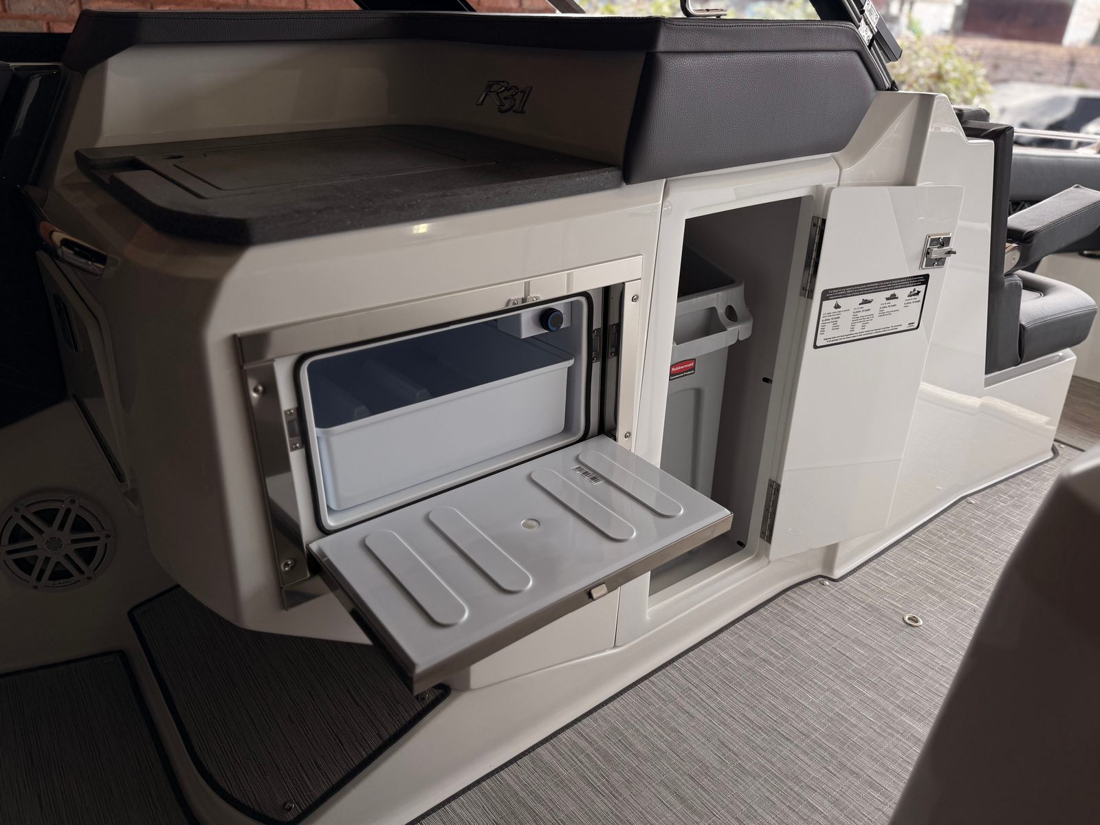 Beyond its impressive performance and luxurious amenities, the Cobalt R31 is designed with practical ownership in mind. The ample storage options throughout the boat make it easy to stow gear, water toys, and personal items, keeping the deck clutter-free and organized. The advanced docking system, supported by the AXIUS joystick control, simplifies the process of mooring and maneuvering in tight spaces, reducing stress and making every outing more enjoyable.Fuel efficiency is another hallmark of the R31’s design, allowing you to spend more time on the water and less time at the fuel dock. The durable construction and reliable systems mean you can count on your Cobalt cruiser for years of memorable adventures, with minimal maintenance and maximum peace of mind.