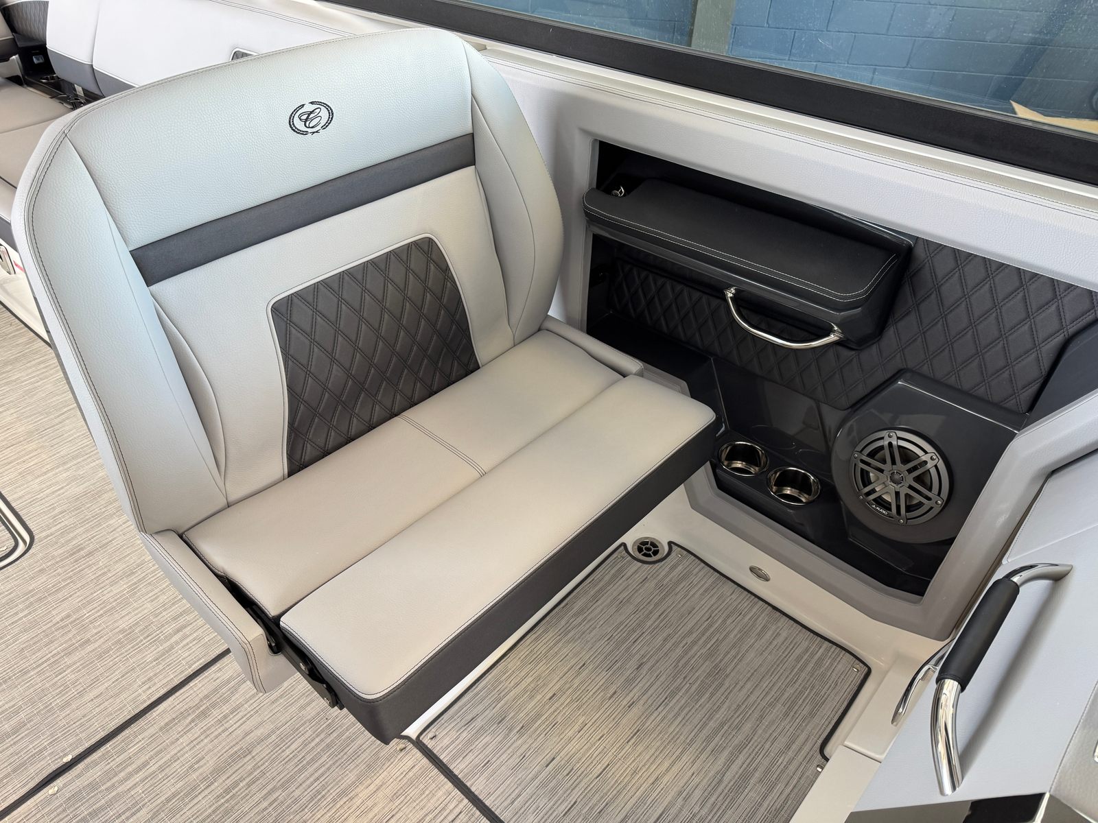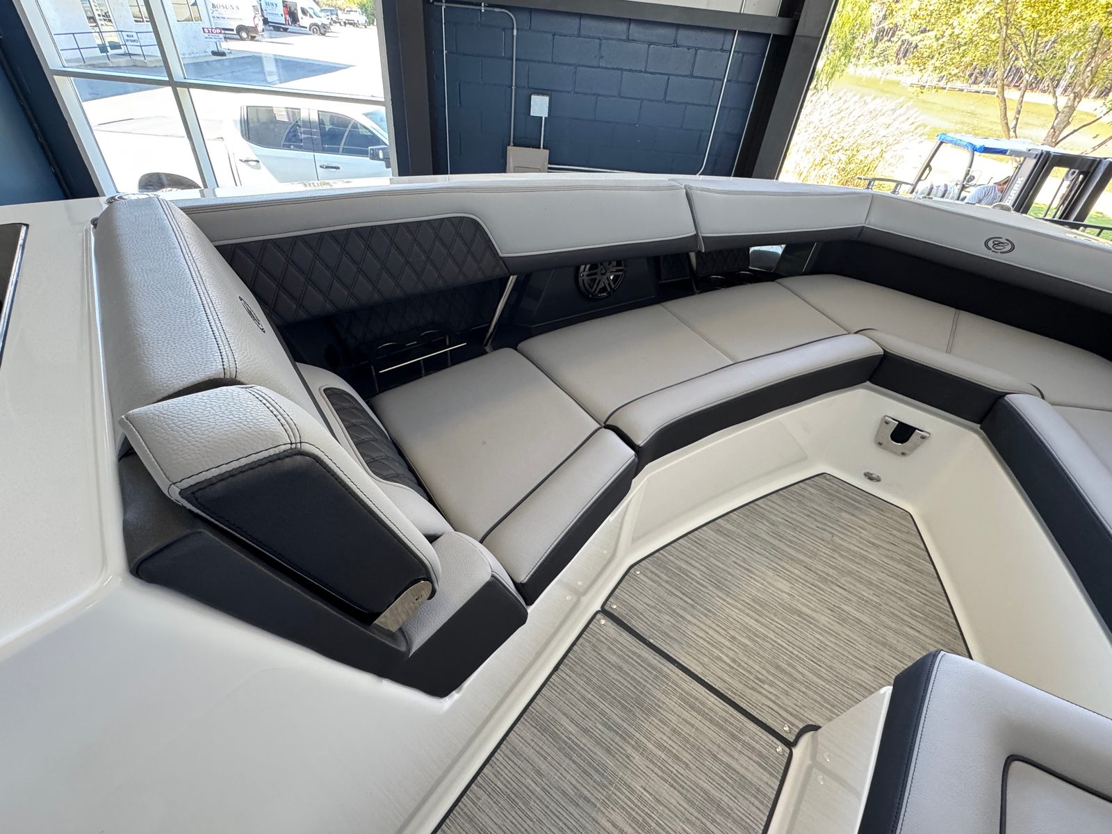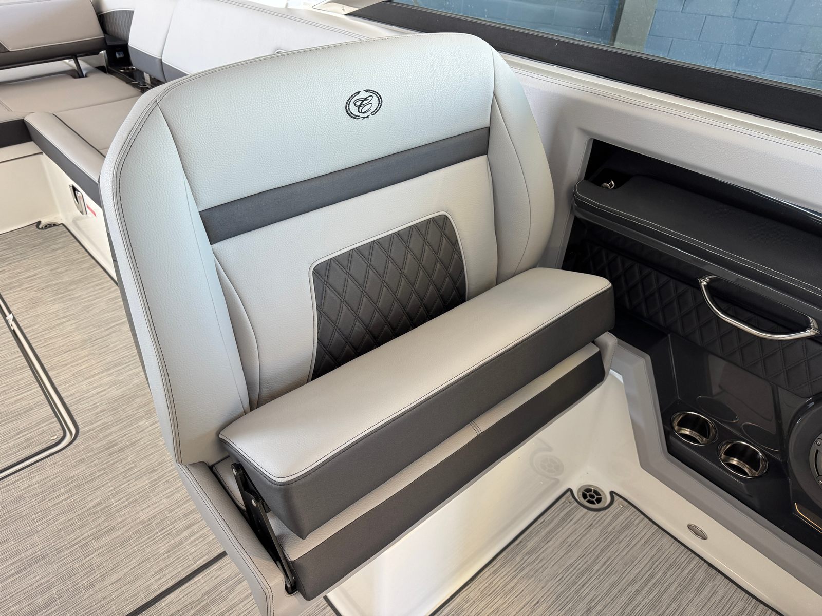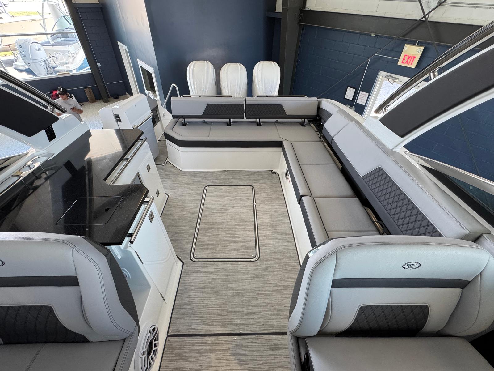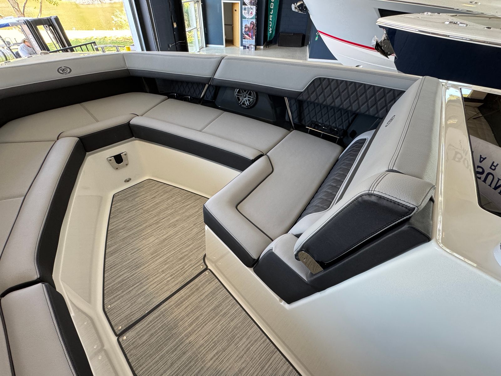 Power and precision define the Cobalt R33 OB’s on-water experience. Equipped with triple Yamaha F300 XCA outboard engines, this cruiser boasts a combined 900 horsepower, delivering exhilarating acceleration and smooth handling. The advanced Yamaha engines are renowned for their reliability and efficiency, ensuring you have the confidence to explore further and faster. The inclusion of the White INT with Joystick system provides intuitive control, making docking and maneuvering effortless even in tight spaces. Whether you are chasing the horizon or navigating busy marinas, the R33 OB’s performance capabilities set it apart from other cruiser boats for sale.