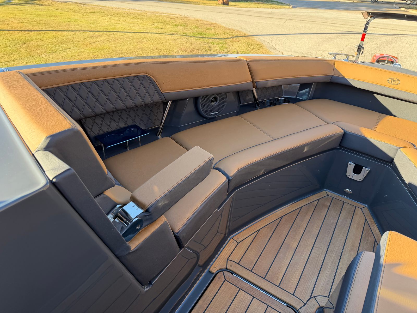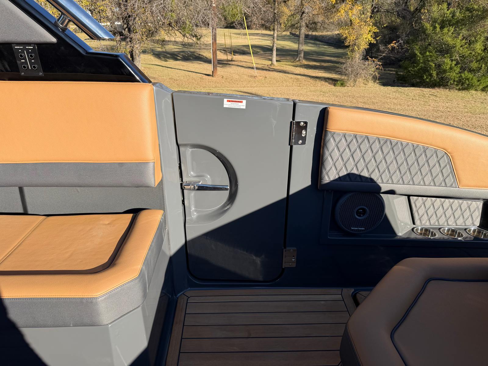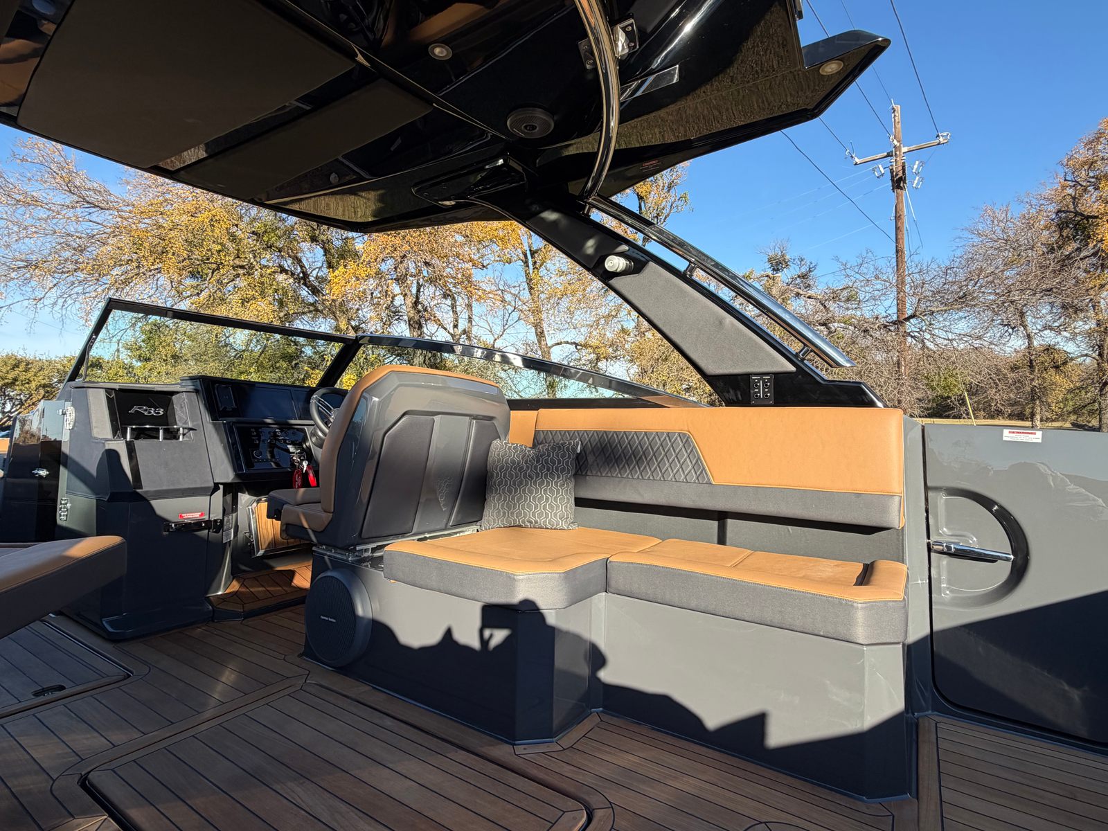 The 2026 Cobalt R33 Surf is packed with premium features designed to enhance every aspect of your boating experience. The striking Accent Stripe and Rich Ebony exterior create a bold visual statement, while the Air Compressor with Holder adds convenience for inflating water toys and equipment. The Arch with Hard Top, finished in Black and complemented by a Black Electric Awning, provides stylish protection from the sun and elements, ensuring comfort throughout your journey. The Battery Maintainer/Charger keeps your boat’s power systems in optimal condition, while the Boarding Door offers easy access for guests of all ages.Inside, the Caramel/Carbon/Ebony interior exudes luxury, with plush seating and elegant finishes that invite relaxation. The Bow Benter Cushion Insert and Bow Shade Sail offer additional comfort and shade, perfect for long days on the water. Signature Cobalt Letters with Flag Emblem showcase the brand’s heritage, while the Dinette Table with Bow and Cockpit Receptacles creates versatile dining and social spaces for entertaining friends and family.