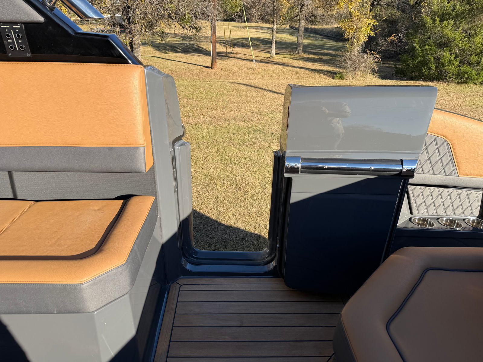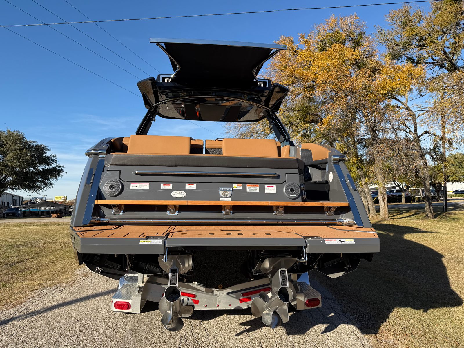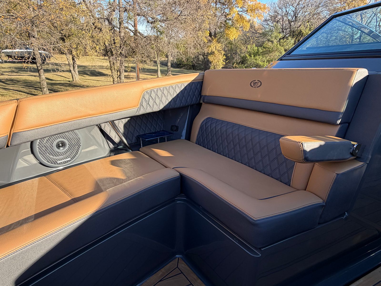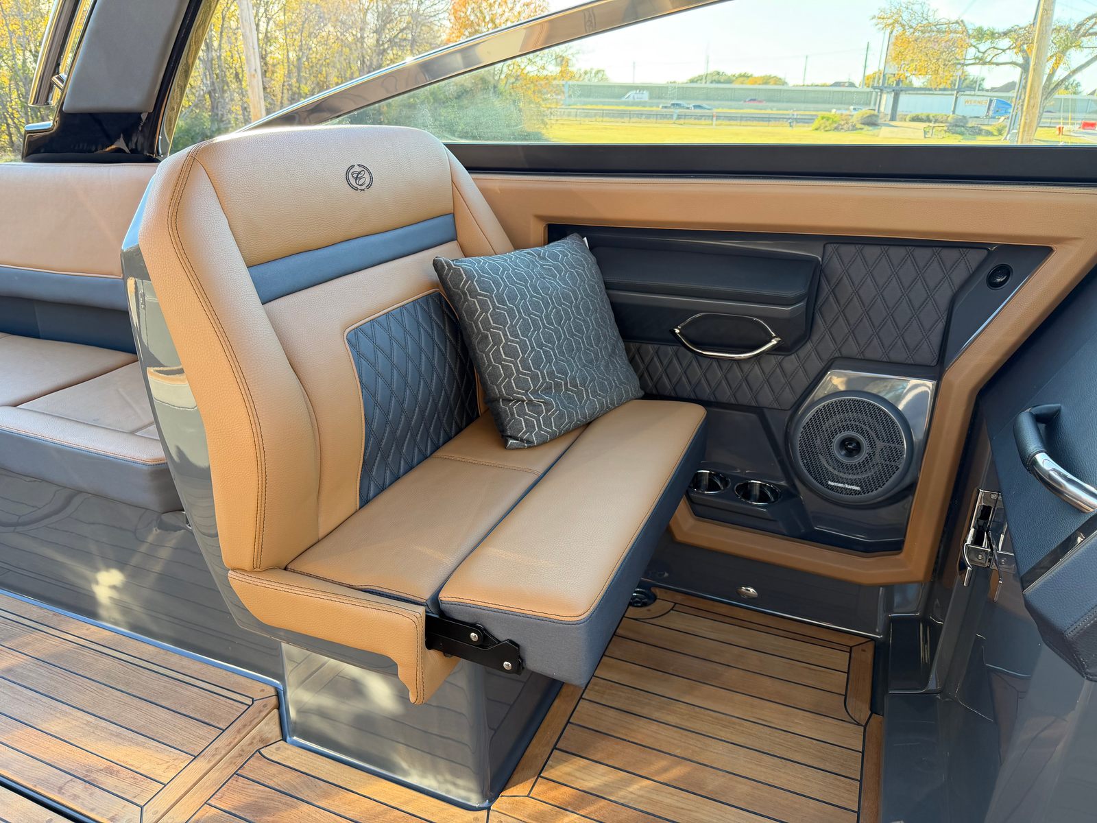 The 2026 Cobalt R33 Surf is packed with premium features designed to enhance every aspect of your boating experience. The striking Accent Stripe and Rich Ebony exterior create a bold visual statement, while the Air Compressor with Holder adds convenience for inflating water toys and equipment. The Arch with Hard Top, finished in Black and complemented by a Black Electric Awning, provides stylish protection from the sun and elements, ensuring comfort throughout your journey. The Battery Maintainer/Charger keeps your boat’s power systems in optimal condition, while the Boarding Door offers easy access for guests of all ages.Inside, the Caramel/Carbon/Ebony interior exudes luxury, with plush seating and elegant finishes that invite relaxation. The Bow Benter Cushion Insert and Bow Shade Sail offer additional comfort and shade, perfect for long days on the water. Signature Cobalt Letters with Flag Emblem showcase the brand’s heritage, while the Dinette Table with Bow and Cockpit Receptacles creates versatile dining and social spaces for entertaining friends and family.
