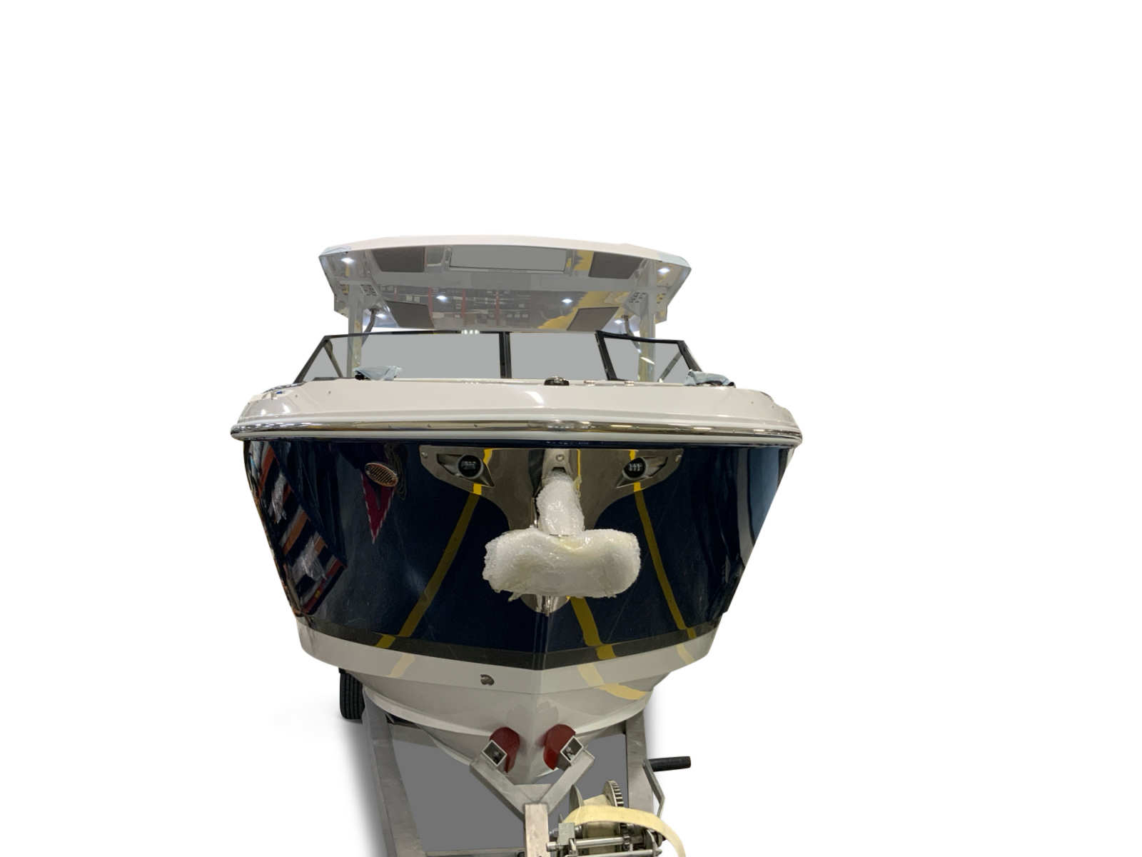 This Cobalt R35 Surf is loaded with special features designed to enhance your boating experience. The white arch with hardtop and electric awning provides shade and protection from the elements, allowing you to enjoy the outdoors in comfort. The air conditioning and heating system (110V) ensures a pleasant environment in any weather, while the air compressor with holder adds convenience for inflating water toys or equipment.The cockpit galley is equipped with a sink, grill, and microwave, making it easy to prepare snacks and meals on the go. Board rack covers and PTM (Performance Tower Mount) keep your gear organized and secure, while the cockpit boarding door and bow center cushion insert offer added comfort and accessibility. The bow tonneau cover in Capt/Navy protects your seating area when not in use, preserving the boat’s pristine condition.