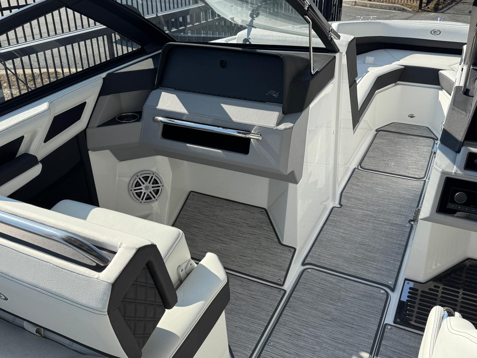 The Cobalt R4 OB is loaded with premium features designed to elevate your boating experience. The Bayside Blue hull side, Graphite Gray boot stripe, and White hull bottom create a visually stunning exterior, while the SSAlumArch segment overlays add a modern touch. The Summit Frost interior is both inviting and durable, ensuring comfort for you and your guests. The White platform provides a convenient space for boarding and water activities, and the Ebony canvas color, along with the Bow Tonneau Cover and Cockpit Tonneau Cover in Ebony, offers protection and style.At the helm, the Glass Cockpit with Dual Garmin 8610 displays provides advanced navigation and control, putting all essential information at your fingertips. This state-of-the-art setup enhances safety and convenience, allowing you to focus on enjoying your time on the water.