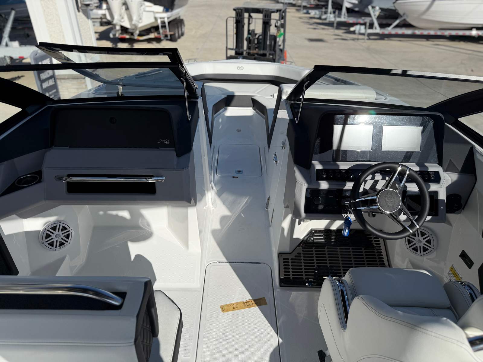 The 2026 Cobalt R4 OB is a brand-new addition to the celebrated Cobalt lineup, offering a fresh take on the classic bowrider design. Measuring 24.25 feet in length, this boat provides ample space for family and friends while maintaining a manageable size for easy handling and docking. The R4 OB’s contemporary silhouette is enhanced by a Frost Gray accent stripe, giving it a modern and sophisticated look that will turn heads at any marina or lakeside gathering.