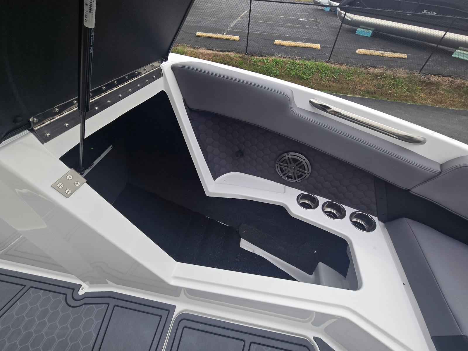 Beyond its impressive style and performance, the Cobalt R4 Surf is engineered for convenience and ease of ownership. The boat’s manageable 24.25-foot length makes it easy to dock, trailer, and store, while the efficient Volvo V8 engine helps optimize fuel consumption for longer days on the water. The Battery Maintainer/Charger is a valuable addition, ensuring your boat remains powered up and ready to go whenever adventure calls.The extended swim platform not only enhances the boat’s recreational capabilities but also provides a safe and accessible area for boarding and disembarking. The Aft Facing Rumble Seat offers a versatile seating option, perfect for watching water sports or simply soaking up the sun. Every detail of the R4 Surf is designed to make your boating experience as enjoyable and hassle-free as possible.