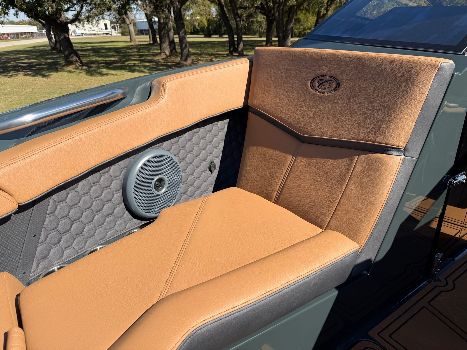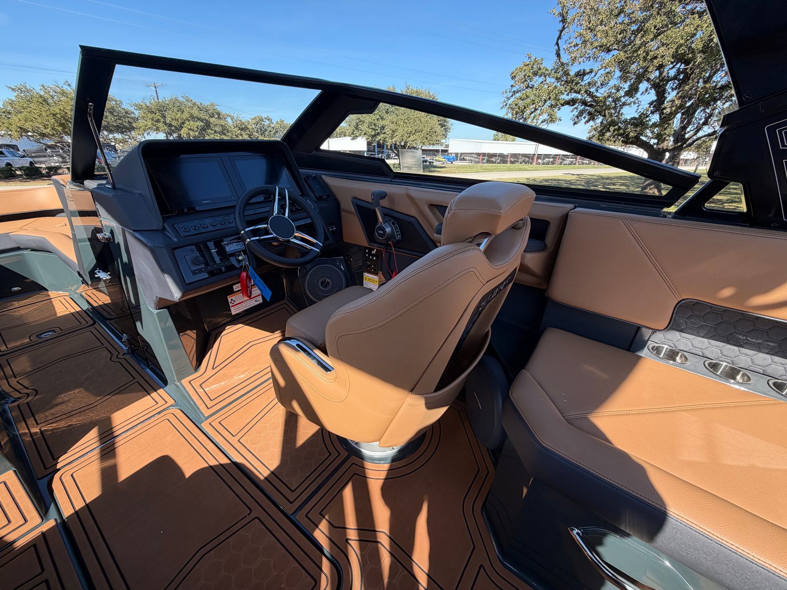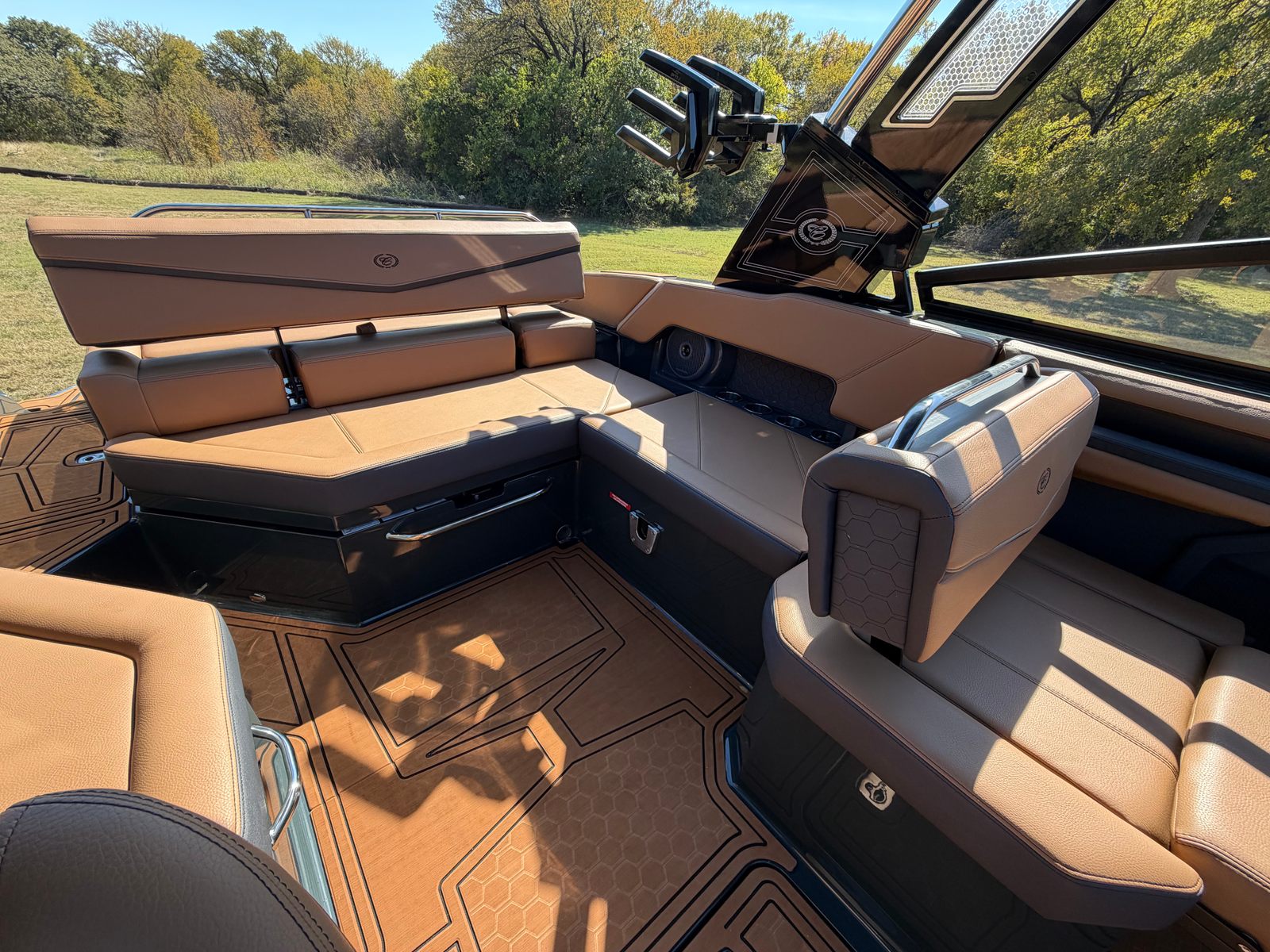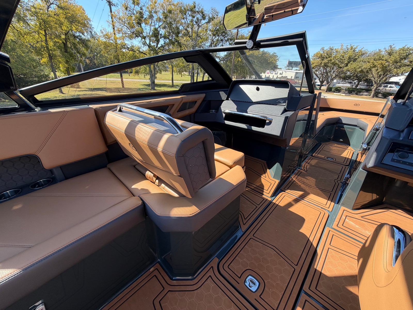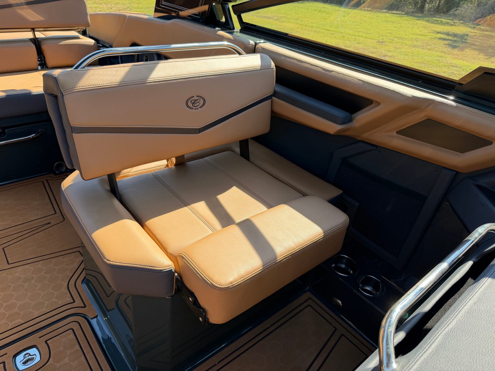 Step aboard the Cobalt R4 Surf and discover a host of premium features designed to enhance every moment on the water. The aft facing rumble seat provides a comfortable spot to relax and take in the scenery, while the aft shade sail in sleek black offers protection from the sun without sacrificing style. The air compressor with holder is perfect for inflating water toys or equipment, adding convenience to your adventures.A battery maintainer/charger (110V) ensures your boat is always ready to go, while bow filler cushions create a versatile lounging area up front. The rear-facing camera adds an extra layer of safety and convenience, making docking and maneuvering a breeze. The caramel, carbon, and ebony interior exudes sophistication, complemented by black satin Cobalt letters for a touch of elegance.Enjoy meals and snacks on the water with the solid teak dinette table, complete with a cockpit receptacle for easy setup. Stainless steel docking lights not only enhance visibility but also add a polished look to the boat’s exterior. Every detail of the R4 Surf is crafted with comfort, style, and functionality in mind, ensuring you get the most out of your time on the water.