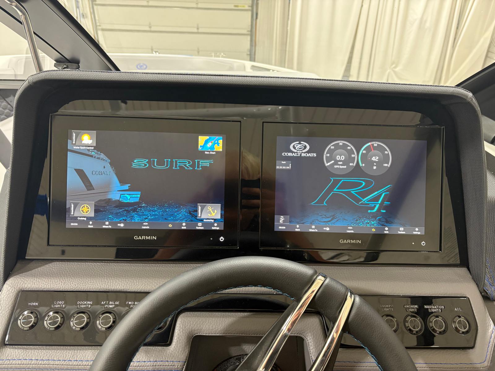 At the heart of the 2026 Cobalt R4 Surf is the Volvo V8 350CE DP FWD engine, delivering a robust 350 horsepower. This single-engine setup provides impressive acceleration, smooth handling, and the power needed for a variety of water sports, including wake surfing and tubing. The forward drive system enhances maneuverability and creates an ideal wake for surfing enthusiasts, while also ensuring a quieter and more fuel-efficient ride. The R4 Surf’s performance is further elevated by the advanced Dual Volvo 8610 glass cockpit, offering intuitive control and real-time data to keep you confidently in command.