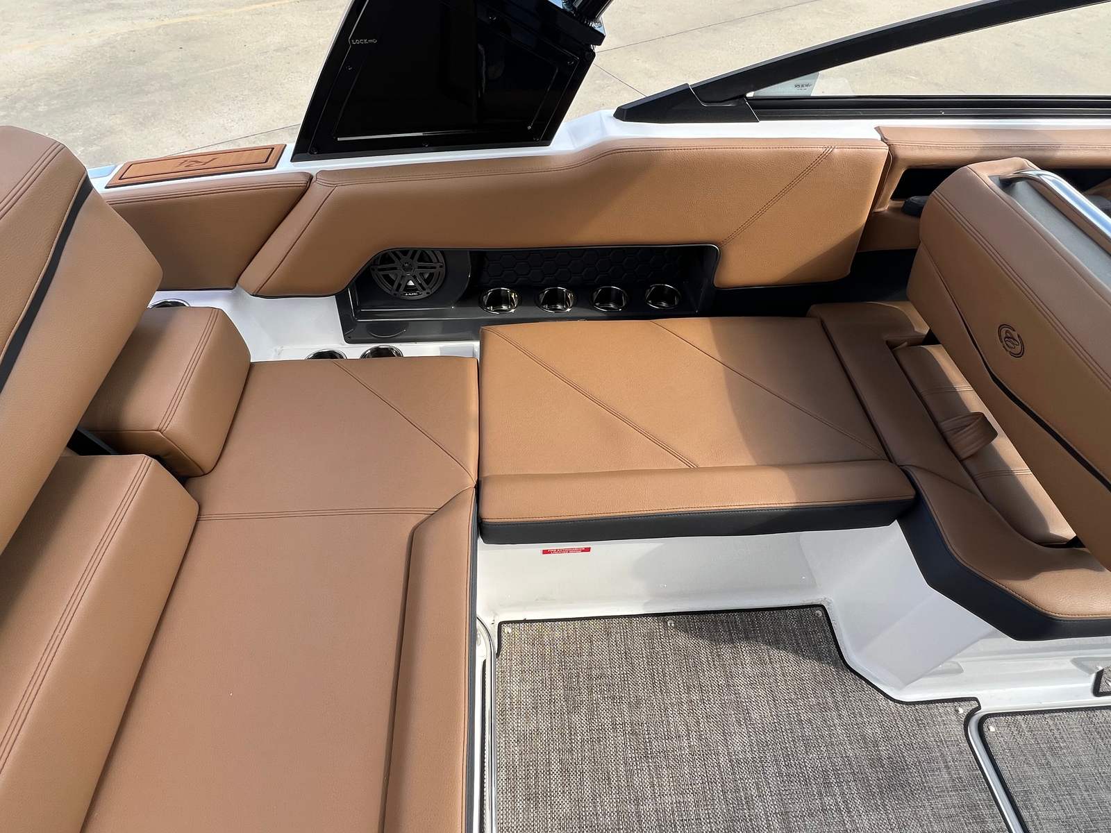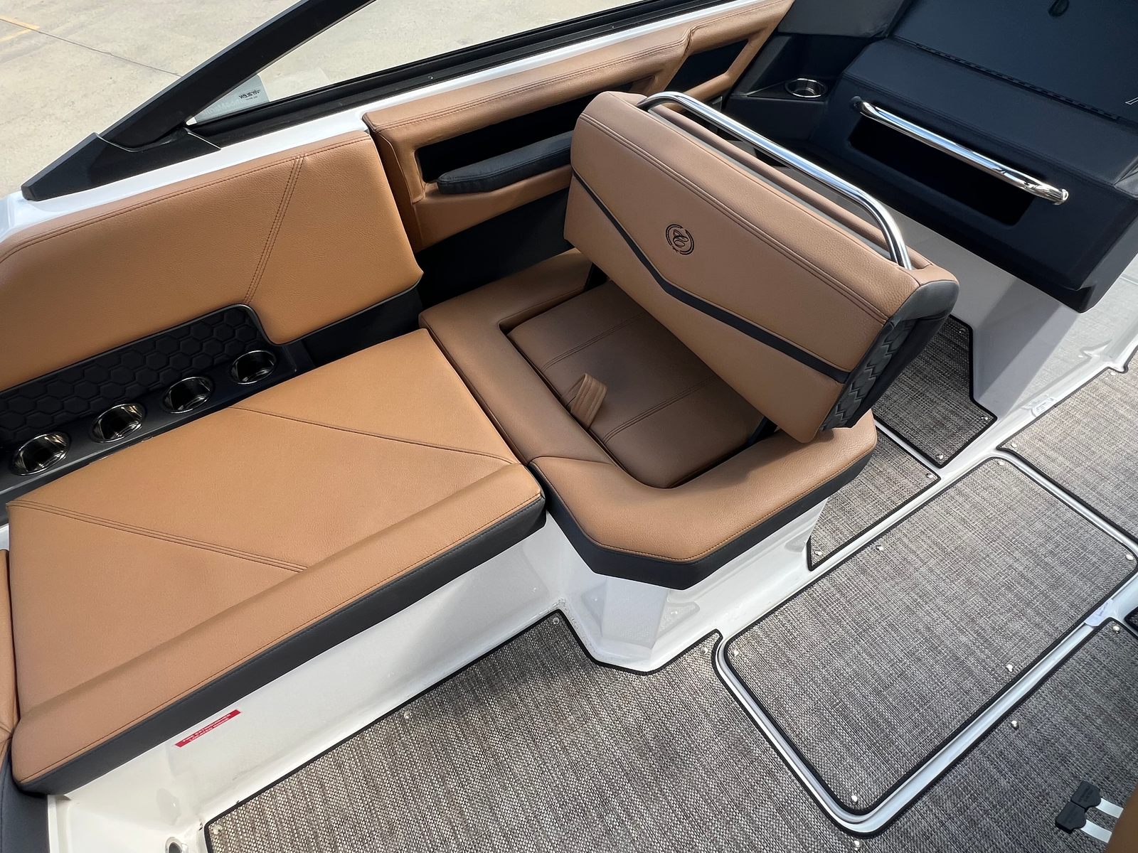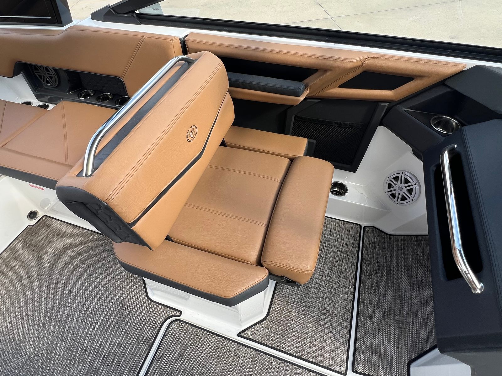 Owning a Cobalt R4 Surf Bowrider means embracing a lifestyle of fun, relaxation, and adventure. The spacious seating arrangement and premium interior materials make every trip comfortable, whether you’re lounging in the sun or entertaining guests. The aft-facing rumble seat is perfect for watching water sports or enjoying a peaceful moment at anchor. With advanced technology like the dual Glass Cockpit displays, you’ll have everything you need to navigate, monitor engine performance, and stay connected.The R4 Surf’s thoughtful design ensures that every aspect of your boating experience is enjoyable. From the plush seagrass flooring to the sleek hull and stylish accents, this Bowrider is built for those who appreciate the finer things in life. It’s a boat that invites you to create lasting memories with family and friends, offering the perfect setting for laughter, relaxation, and excitement.