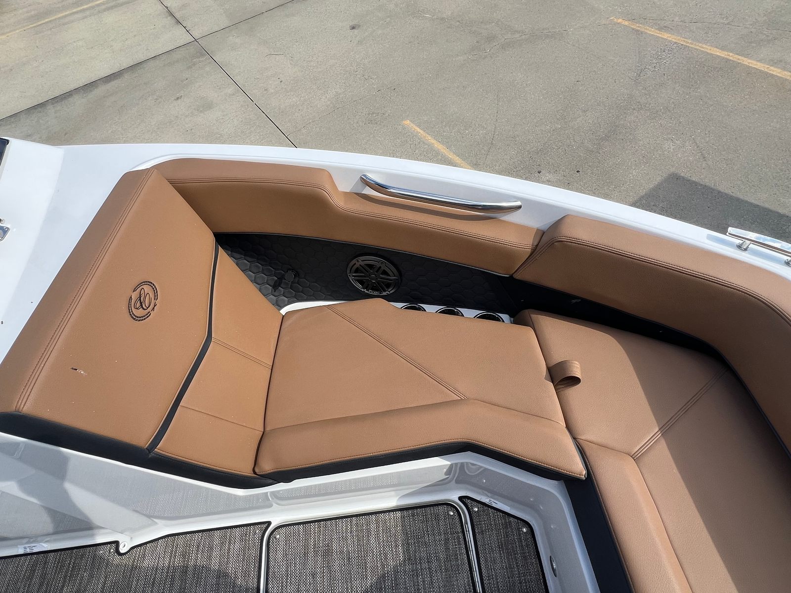 At the heart of the Cobalt R4 Surf is a powerful Volvo V8 350CE DP engine, delivering an impressive 350 horsepower. This single-engine setup provides smooth acceleration, responsive handling, and reliable power for a variety of activities, from cruising to wake surfing. The advanced propulsion system ensures optimal fuel efficiency and minimal noise, allowing you to enjoy the serenity of the water or the excitement of high-speed runs. Whether you’re navigating tight turns or gliding across open water, the R4 Surf offers a dynamic and exhilarating ride that sets it apart from other Bowrider boats for sale.