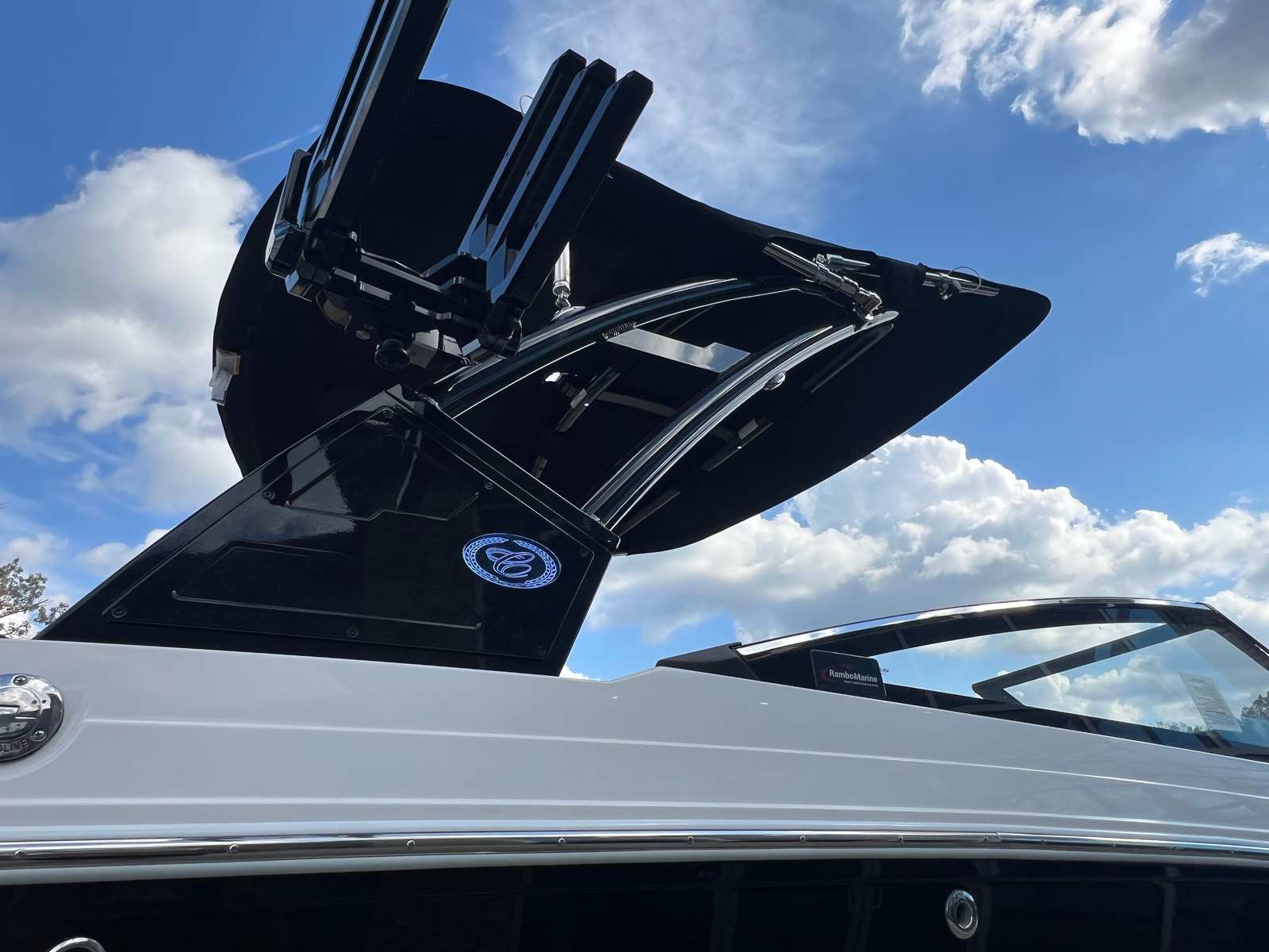 The 2026 Cobalt R4 Surf is packed with special features that enhance both its aesthetic appeal and functional capabilities. The Volvo V8 350CE DP engine is complemented by a sophisticated Glass Cockpit with dual Volvo 8610 displays, providing intuitive control and real-time information at your fingertips. The aft-facing rumble seat offers a unique vantage point for relaxing or socializing, while the caramel, carbon, and ebony interior creates a warm and inviting atmosphere.Practical touches like the battery maintainer/charger (110V) ensure your boat is always ready for action, and the stainless steel docking lights make nighttime arrivals and departures safe and stylish. Fender clips with line (four included) simplify the docking process, and the floor covering in seagrass raw umber adds both comfort and durability underfoot. The hull bottom in ebony and Cobalt letters in white satin complete the look, giving the R4 Surf a distinctive and elegant presence on the water.