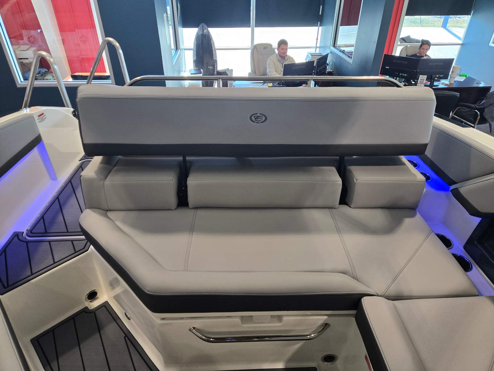 Owning the Cobalt R4 Bowrider means embracing a lifestyle of fun, relaxation, and adventure. The spacious layout is perfect for socializing, with plenty of room for guests to lounge, sunbathe, or enjoy refreshments. The premium materials and finishes throughout the boat create an inviting environment, while the ergonomic design ensures comfort for everyone on board.The LED accent lighting transforms evening outings into memorable experiences, setting the mood for celebrations or quiet moments under the stars. The advanced navigation system and glass cockpit make piloting the boat intuitive and enjoyable, so you can focus on making memories with family and friends.