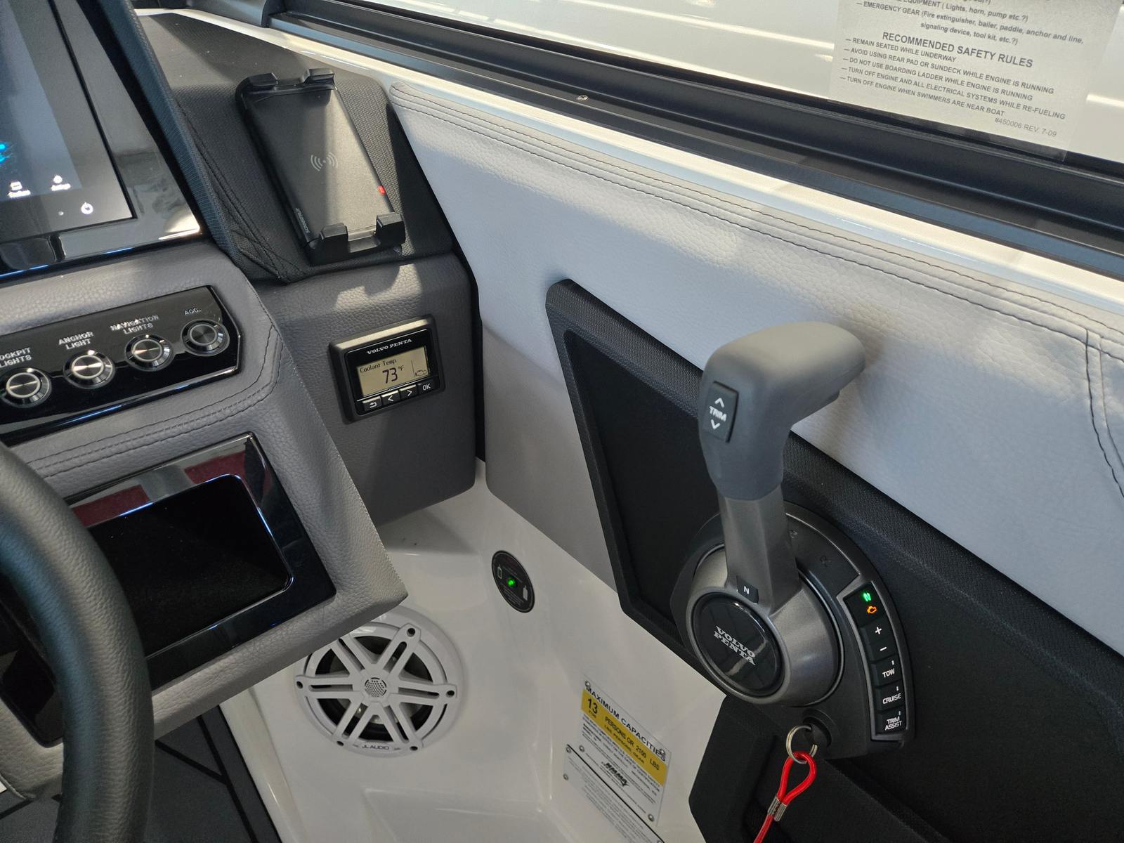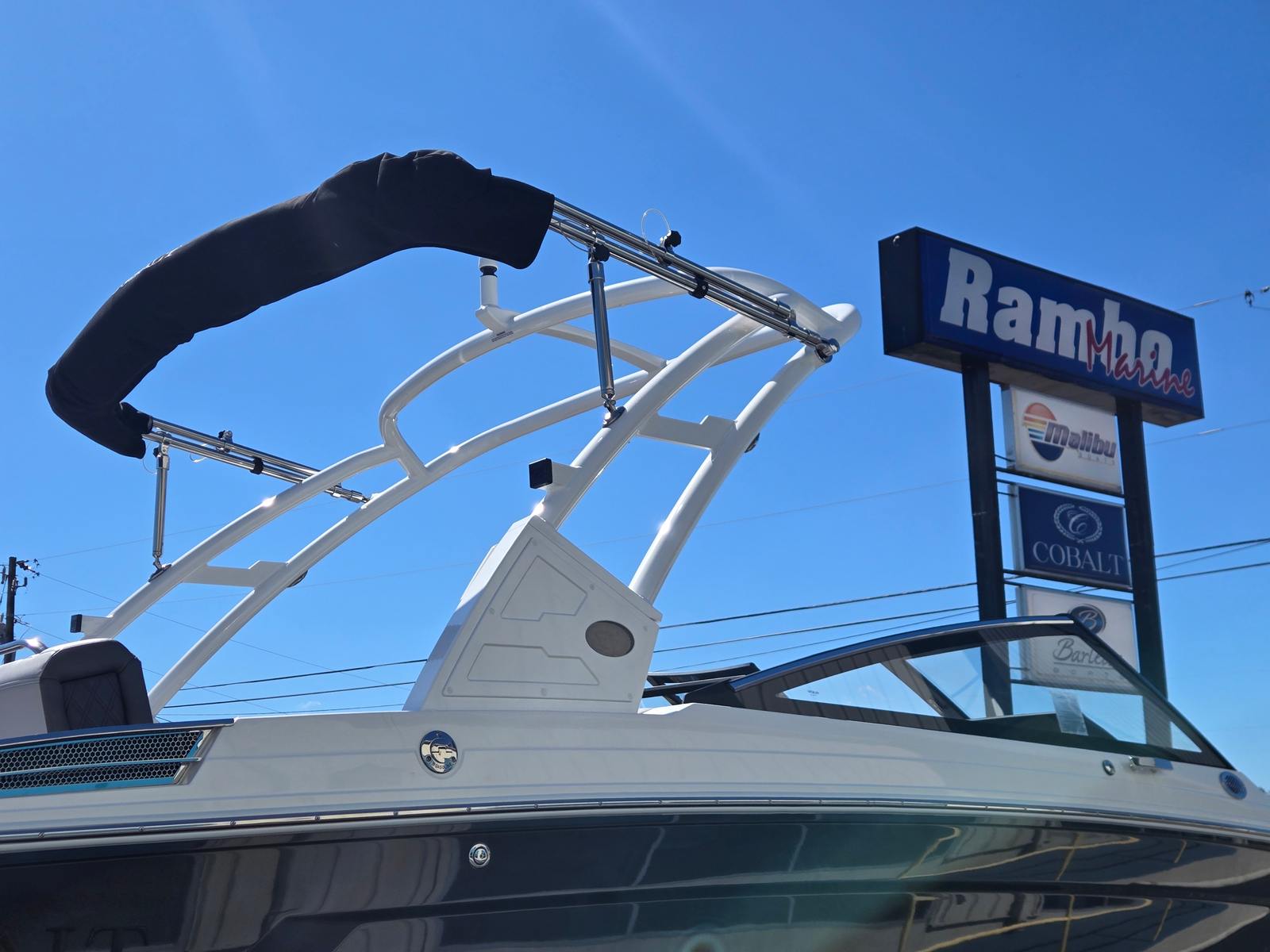 The Cobalt R4 Bowrider is designed with practicality in mind, making ownership easy and enjoyable. The stainless steel docking lights enhance visibility during low-light conditions, simplifying the docking process and increasing safety. The fire extinguisher with an automatic system adds an extra layer of protection, giving you confidence every time you set out.The Sof-Trac Mat at the helm provides a comfortable and secure footing for the captain, even during long days on the water. The dual Garmin 8310 displays in the glass cockpit offer comprehensive navigation and system monitoring, helping you plan routes, track performance, and stay informed throughout your journey.With its spacious design, the Cobalt R4 offers plenty of room for gear, water toys, and personal items, making it easy to prepare for any adventure. The efficient Volvo V8 engine ensures you spend less time refueling and more time enjoying the water, while the single-engine configuration simplifies maintenance and operation.