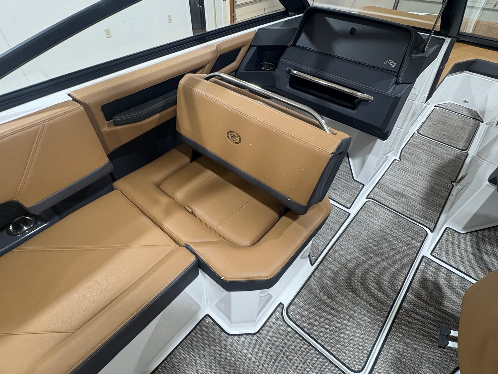 The 2026 Cobalt R4 is a 24.25-foot bowrider that exudes style and substance from every angle. As a new model, it showcases the latest advancements in marine engineering and design, making it an exceptional choice for boaters who value both performance and comfort. The R4’s striking hull side in Navy, accented by a Graphite Gray stripe, ensures you will turn heads at every marina and on every waterway. The interior, finished in a sophisticated blend of Caramel and Carbon, creates a warm and inviting atmosphere for you and your guests. Whether you are cruising with family or entertaining friends, the Cobalt R4 offers ample space and thoughtful amenities to enhance your time on the water.