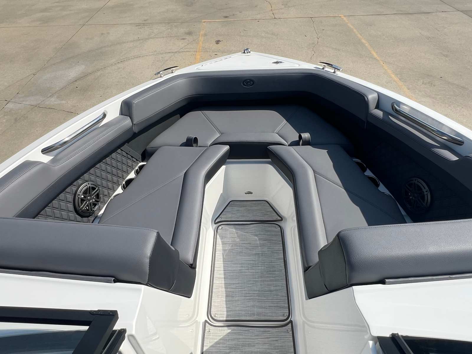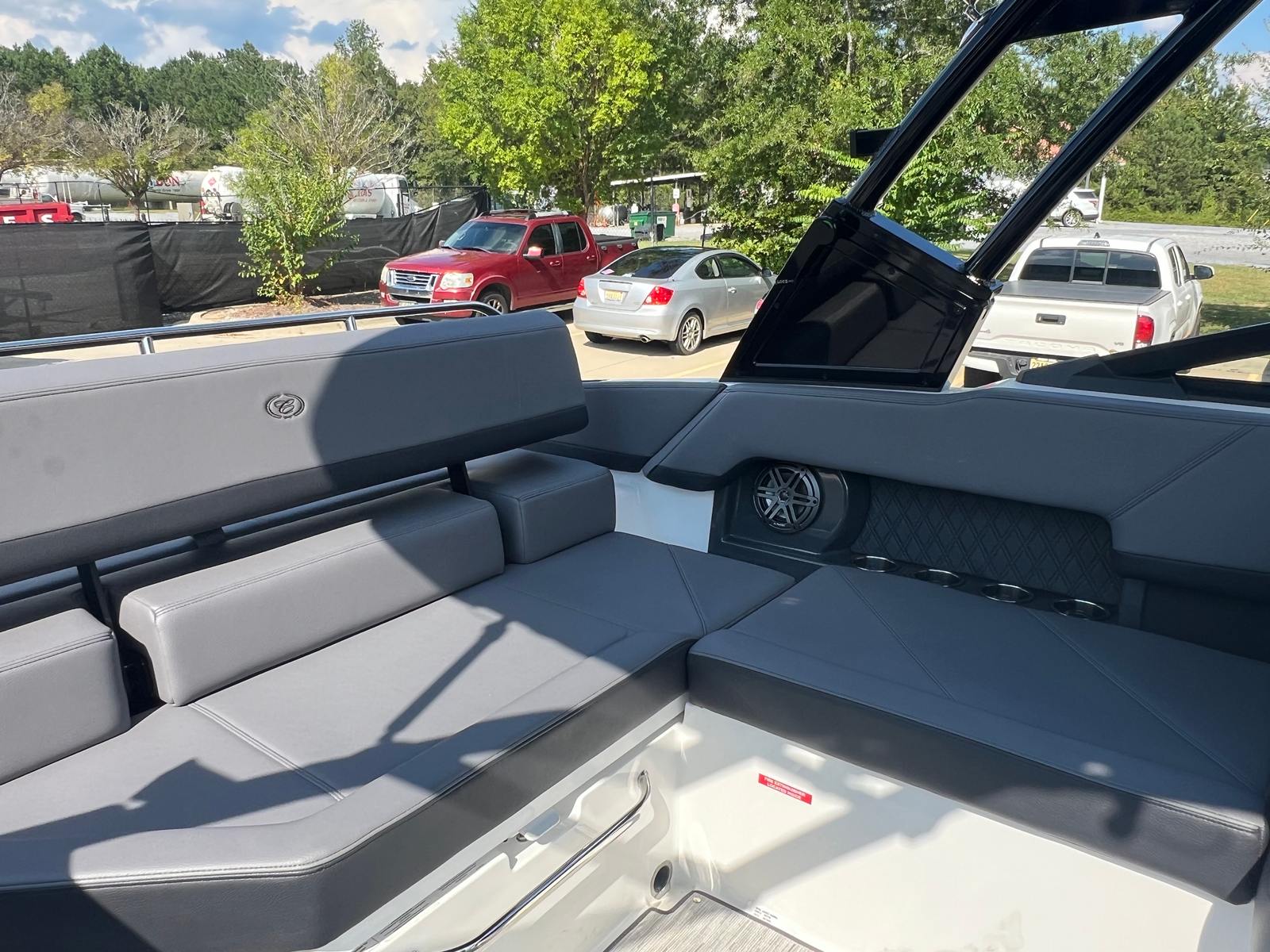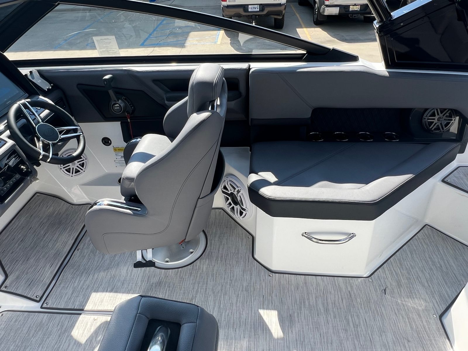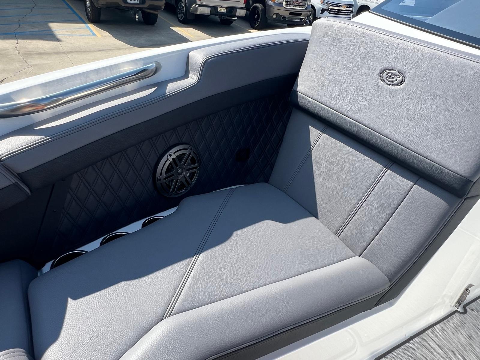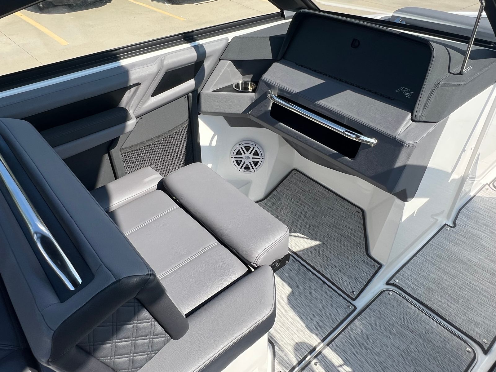 This Bowrider boat for sale is designed with practicality in mind, making ownership both convenient and rewarding. The integrated docking lights and fender clips simplify the process of mooring and securing your boat, while the battery maintainer/charger ensures your vessel is always ready for spontaneous adventures. The spacious deck and clever storage solutions allow you to bring along all the essentials for a day of fun, from water sports gear to picnic supplies.The R4’s efficient engine and streamlined hull contribute to excellent fuel economy, allowing you to spend more time enjoying the water and less time refueling. The durable floor covering and high-quality materials are easy to clean and maintain, ensuring your boat stays looking its best season after season.
