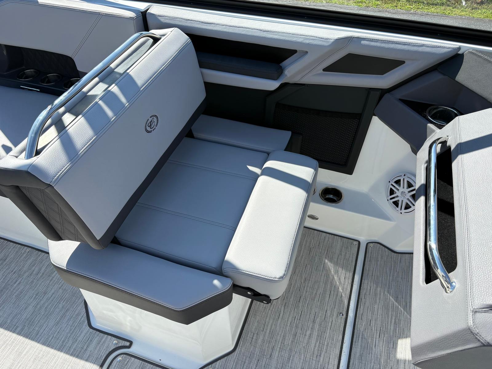 The Cobalt R4 is loaded with features that enhance both its functionality and its appeal. The Aft Facing Rumble Seat offers a unique and comfortable spot to relax and take in the scenery, while the Arch E2 Black Folding with Bimini in Ebony provides shade and style, making it easy to enjoy sunny days without worry. The boat’s Battery Maintainer/Charger ensures your power systems are always ready for action, while the Cobalt Letters in Black Satin add a touch of sophistication to the boat’s branding. Stainless Steel Docking Lights not only enhance the R4’s appearance but also provide practical illumination for evening arrivals and departures. Every detail, from the color accents to the premium materials, reflects Cobalt’s dedication to quality and innovation.