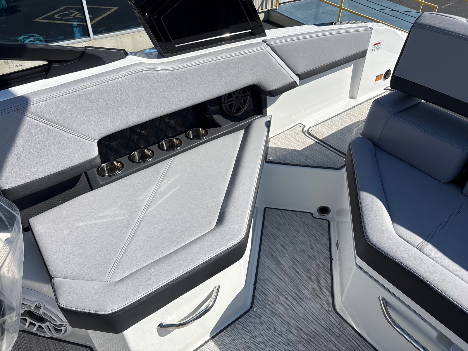 The 2026 Cobalt R4 is a brand-new Bowrider that measures an impressive 24.25 feet in length, offering ample space for family and friends to relax and enjoy the ride. This Cobalt boat for sale is a testament to the brand’s commitment to quality, durability, and modern design. The R4’s striking exterior features a Hull Side in White, an Accent Stripe in Rich Ebony, and a Hull Bottom in White, creating a sophisticated and eye-catching profile that stands out at any marina or on any lake. The interior is finished in Frost and Slate, providing a cool, inviting atmosphere that complements the boat’s elegant exterior.