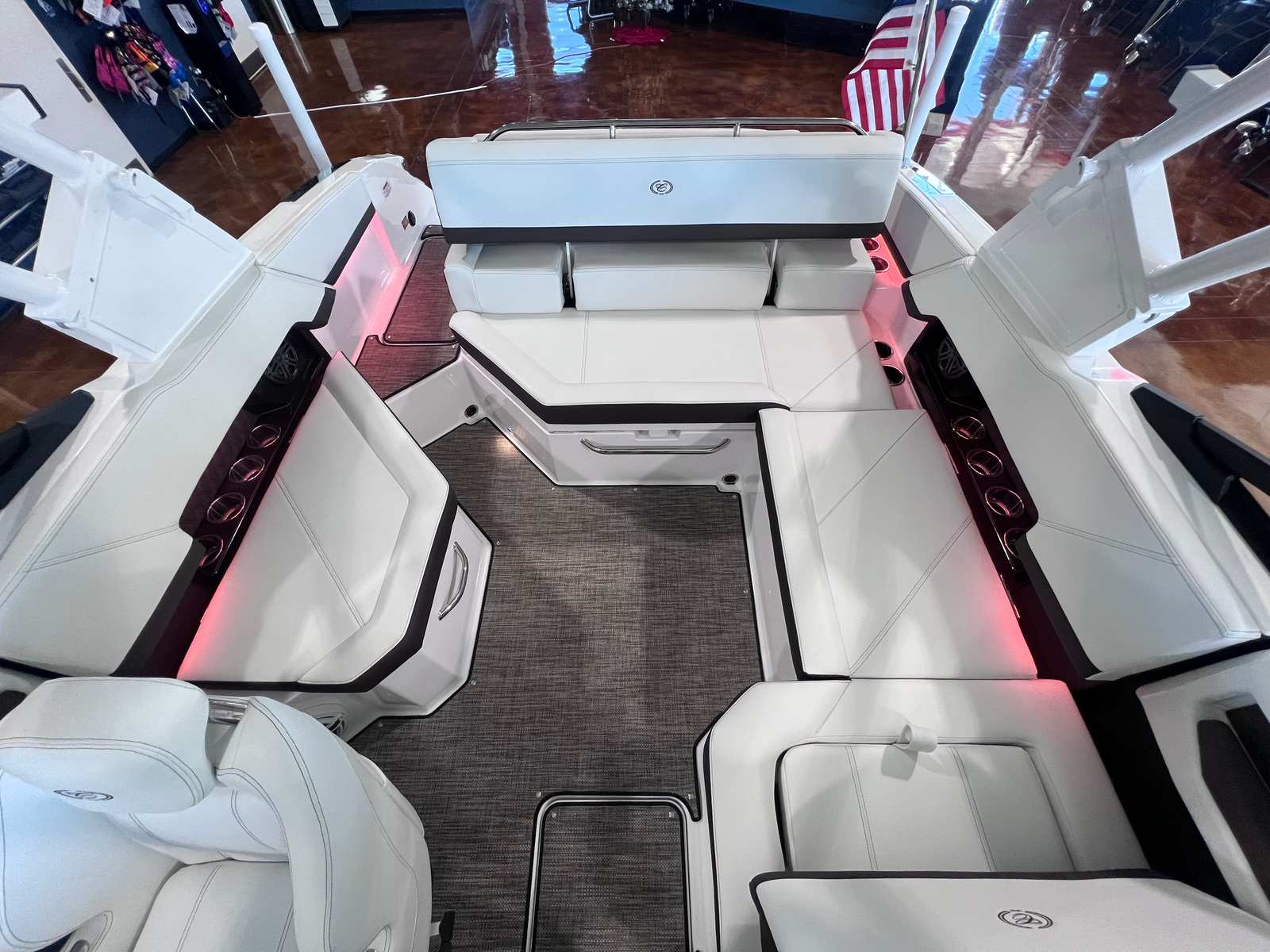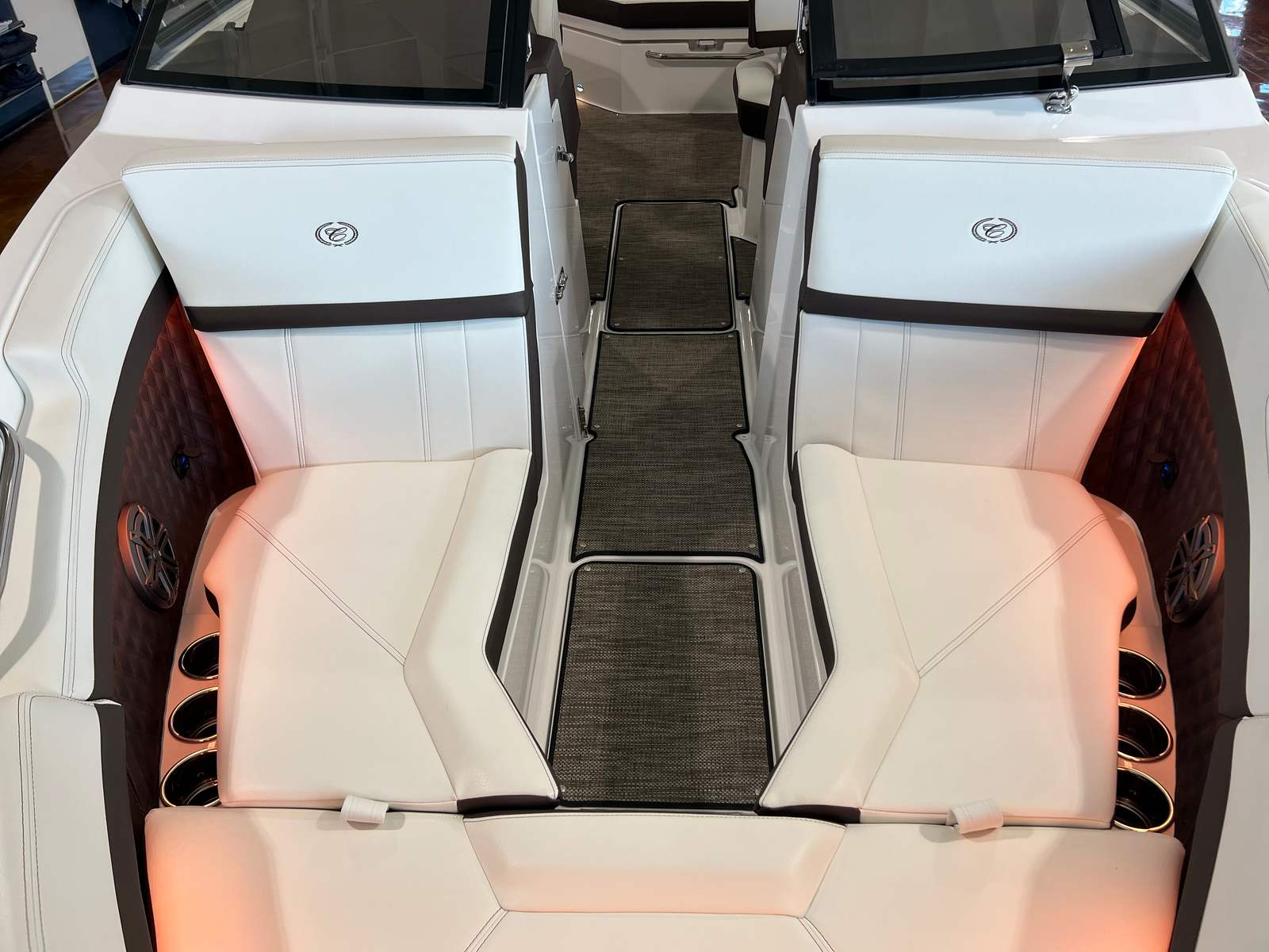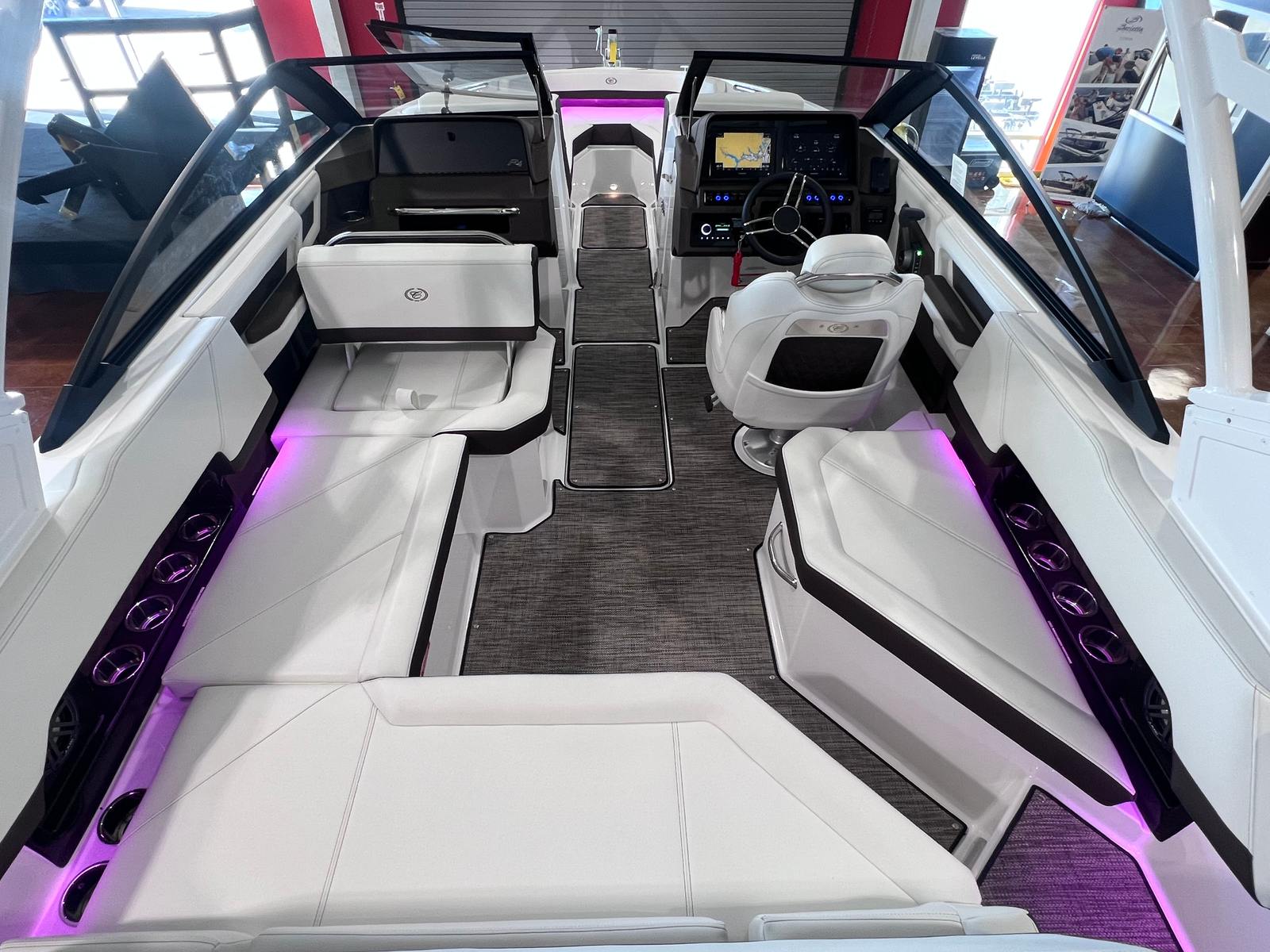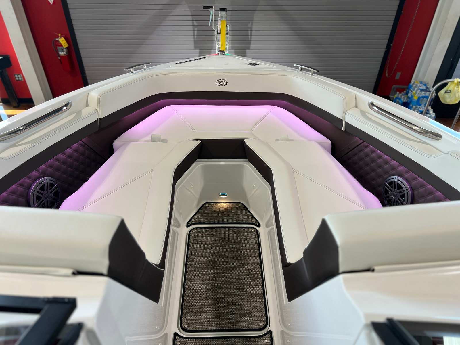 Owning the Cobalt R4 Bowrider means embracing a lifestyle of fun, relaxation, and adventure. The spacious layout is perfect for entertaining family and friends, with ample seating and thoughtful design elements that encourage socializing. The aft-facing rumble seat is ideal for lounging while anchored or enjoying the scenery as you cruise.The folding arch with bimini offers versatile protection from the elements, allowing you to adapt to changing weather conditions without sacrificing comfort. The premium floor covering ensures that every step is cushioned and secure, while the glass cockpit and dual Garmin displays provide peace of mind with advanced navigation and system controls.The R4’s combination of power and efficiency means you can spend more time enjoying the water and less time worrying about fuel consumption. The battery maintainer/charger and stainless steel docking lights add practical value, making maintenance and nighttime docking simple and stress-free.
