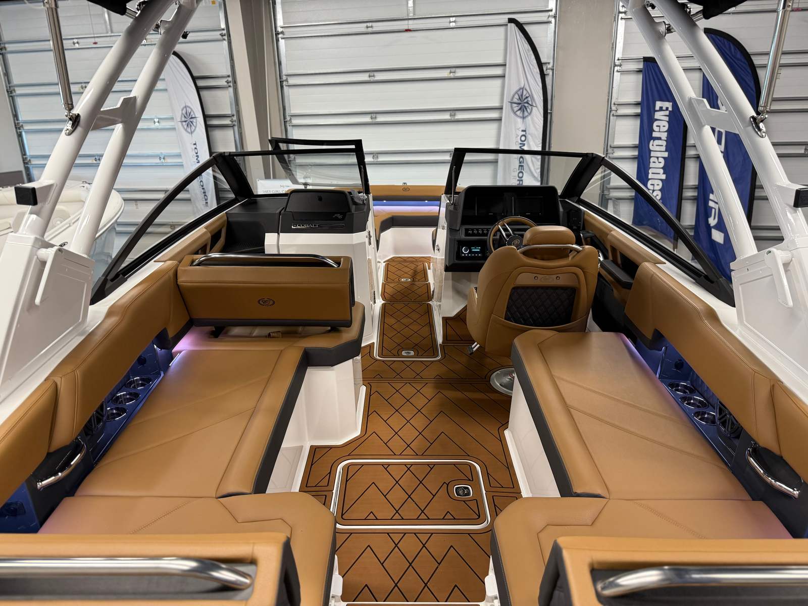 The 2026 Cobalt R6 OB is a stunning 25.42-foot Bowrider that perfectly balances spaciousness and agility. Crafted with meticulous attention to detail, this boat showcases Cobalt’s renowned craftsmanship and commitment to quality. The striking exterior features a Hull Side in Graphite Gray, an Accent Stripe in Rich Ebony, and a Hull Bottom in White, creating a sophisticated and modern look that turns heads at every marina. The interior, finished in a luxurious blend of Caramel and Carbon, invites you and your guests to relax in comfort and style. As a new model, the R6 OB offers the latest advancements in design and technology, ensuring a premium boating experience for years to come.