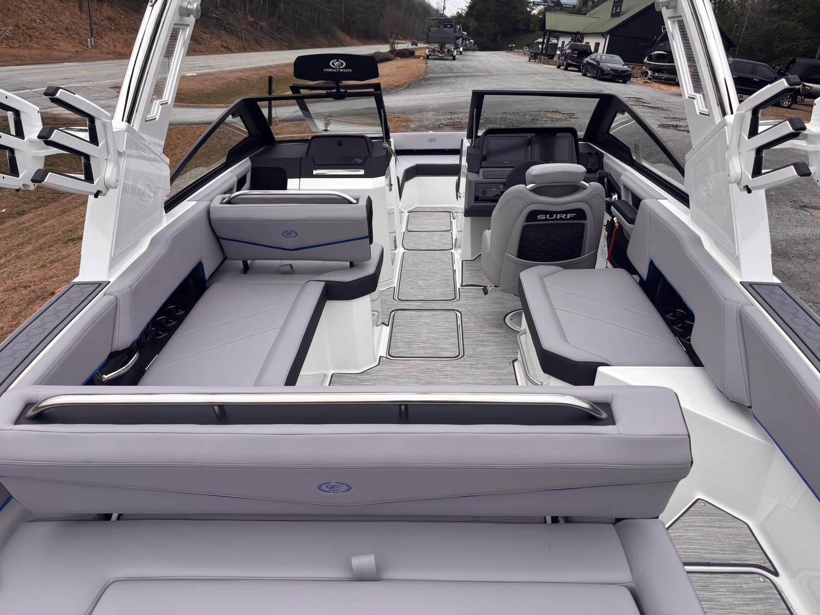 The Cobalt R6 Surf is loaded with premium features designed to enhance your time on the water. The striking Cobalt Letters in White Satin add a touch of elegance to the exterior, while the Docking Lights in Stainless Steel ensure safe and stylish arrivals at any time of day. The White Electric Arch not only adds a modern flair but also offers practical benefits, such as easy storage and improved visibility. The Prisma, Navy (Folding) Bimini provides versatile shade options, allowing you to enjoy sunny days in comfort.Step aboard and experience the luxury of the Seagrass, Silver Ash floor covering, which is both durable and comfortable underfoot. The interior, finished in Frost, Slate, and Pacific Blue, creates a sophisticated and inviting atmosphere. The Glass Cockpit, featuring Dual Garmin 8610 displays, puts advanced navigation and control at your fingertips, ensuring you are always in command of your journey. For added convenience, the R6 Surf includes a Head with Pump Out Porta Potti, making longer trips more comfortable for everyone on board.LED Interior Accent Lighting with customizable R/G/B settings allows you to set the perfect mood for any occasion, while the Mooring Cover with Prisma Folding Arch ensures your boat stays protected when not in use. Every detail of the Cobalt R6 Surf is thoughtfully designed to provide the ultimate boating experience.