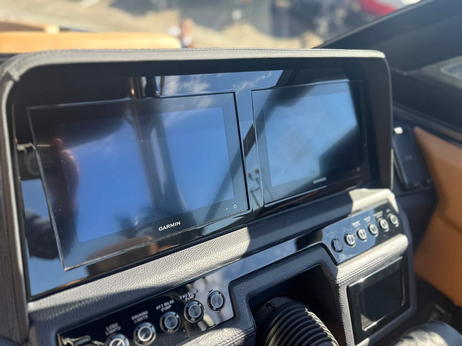 Practicality meets luxury in the Cobalt R6 Surf. The rear facing camera simplifies docking and tight maneuvers, making it easy for boaters of all experience levels to handle the vessel with confidence. The battery maintainer/charger ensures your boat is always ready to go, minimizing downtime and maximizing your time on the water.The folding electric arch and Ebony Bimini provide flexible shade options, while the stainless steel docking lights enhance safety during low-light conditions. The dual Garmin 8610 displays offer intuitive navigation and system monitoring, giving you peace of mind wherever your adventures take you.Storage is thoughtfully integrated throughout the boat, allowing you to stow gear, snacks, and personal items securely. The ergonomic layout makes it easy to access everything you need, so you can focus on enjoying your time on the water.