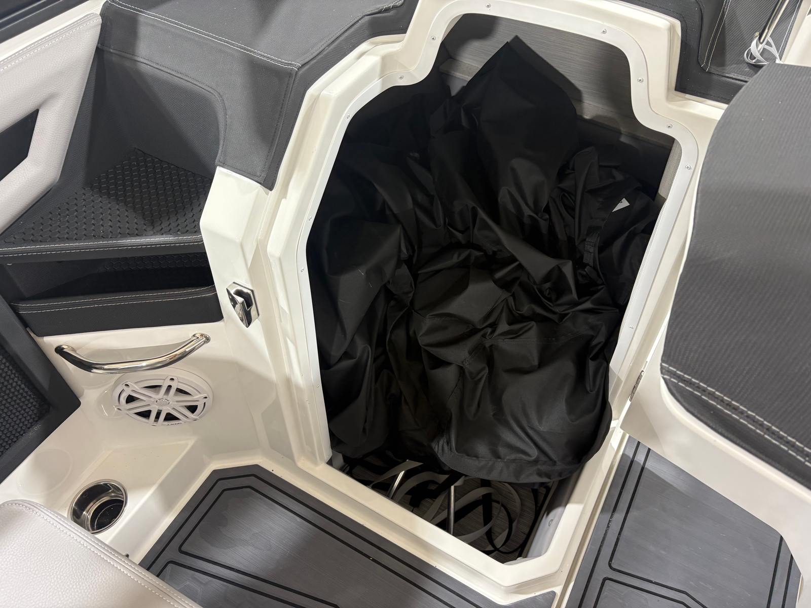 Practicality is at the core of the Cobalt R6 Surf’s design. The boat’s generous length offers ample storage for gear, water toys, and personal items, keeping the deck clutter-free and organized. Docking is made easier with stainless steel docking lights, enhancing safety during low-light conditions. The mooring cover ensures your boat stays protected from the elements, preserving its pristine condition.Fuel efficiency is enhanced by the advanced Volvo V8 engine, allowing you to spend more time on the water and less time refueling. The glass cockpit with dual Volvo 8610 displays simplifies navigation and system monitoring, making every journey stress-free. The Sof-Trac mat provides a comfortable and secure footing, reducing fatigue during long days on the water.